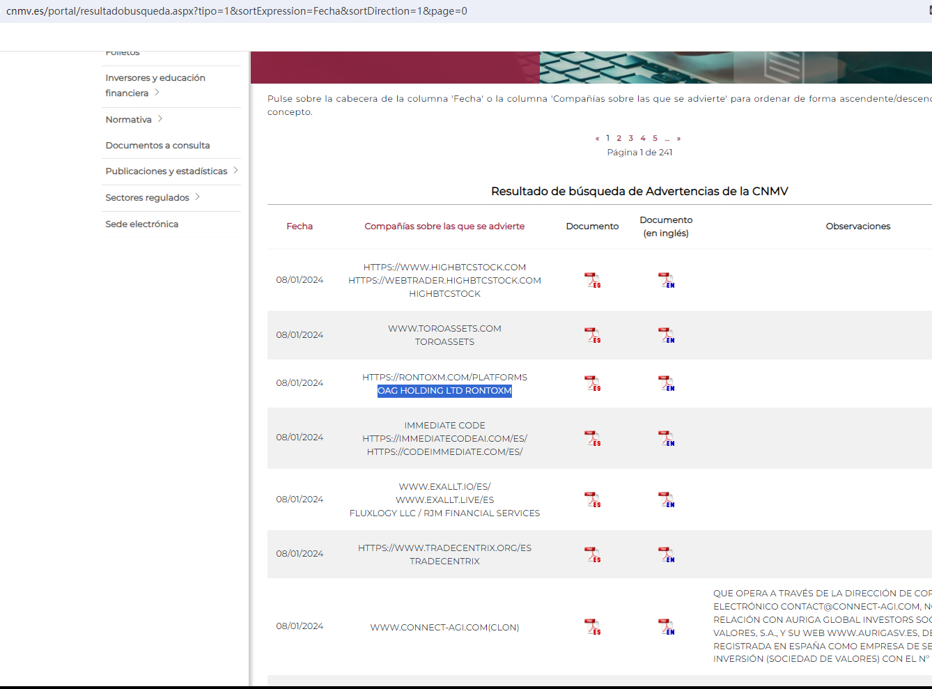 • Jan 09, 2024 The CNMV issued a Warning against RONTOXM