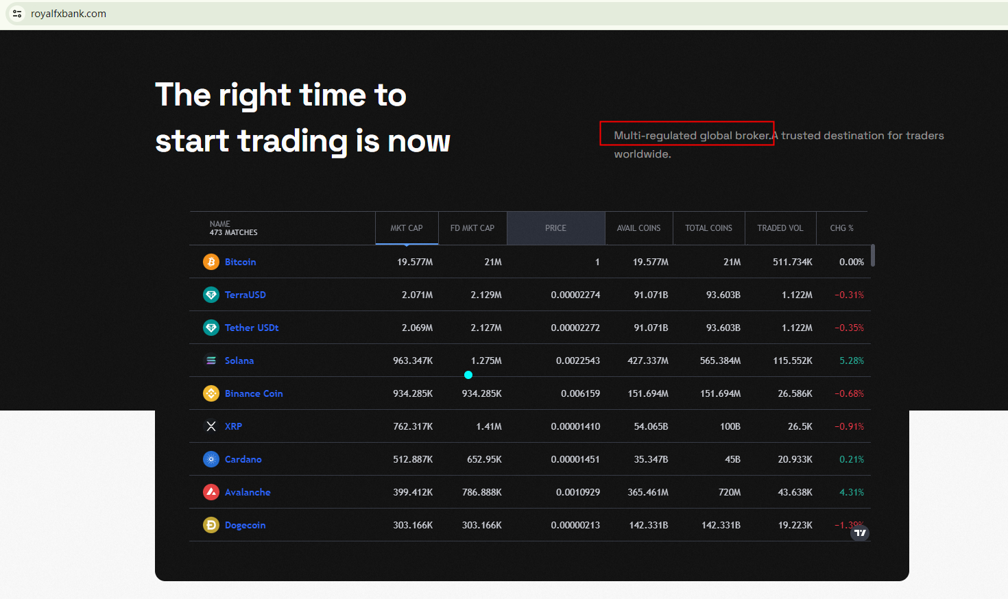 While Royal Fx Bank keeps highlighting that it is a multi-regulated global broker, the reality suggests otherwise.Royal Fx Bank claims to be operated by BANKS ASSOCIATES with an address in the UK. However, in the Companies House (CH), Banks Associates Limited is dissolved. What's more, the Financial Conduct Authority (FCA) doesn't have information associated this website and the company. Royal Fx Bank turns out to be an unlicensed trading platform.In addition, the Cyprus Securities and Exchange Commission (CySEC) has flagged royalfxbank.com as an unlicensed investment website.In essence, Royal Fx Bank is not regulated by any governing body. Entrusting this broker with investors' funds is highly risky, as there are no legal protections in place to safeguard the funds.Royal Fx Bank is a scam.