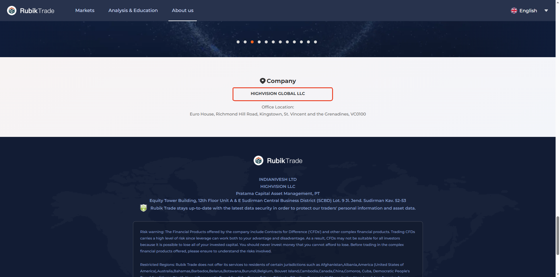 Rubik Trade only claims to be registered in Saint Vincent and the Grenadines on its website. While we can find a matching company in the Financial Services Authority (FSA) registry of Saint Vincent and the Grenadines, this only grants International Business Company (IBC) status. This does not constitute a valid financial licence. The SVG FSA has clearly stated that it does not regulate or licence forex brokers.