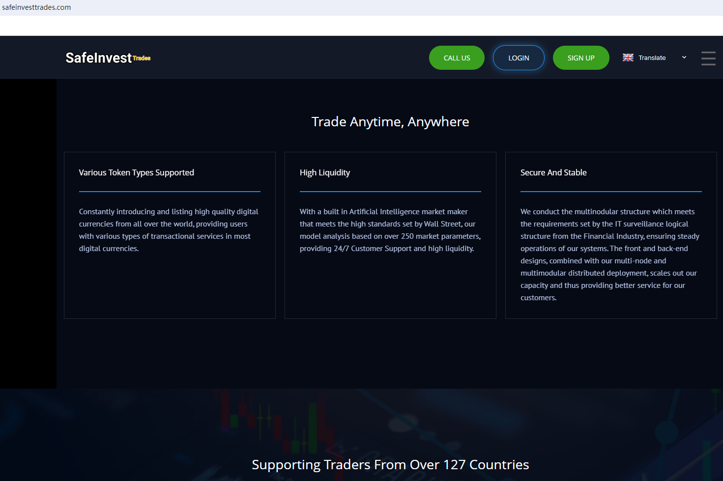 This scam website uses a website template commonly used by fake traders. This template comes with fixed content and icon design. Although the scammer changed his brand name, in terms of regulatory information, this careless scammer directly stole the regulatory information of the fake traders without even seriously changing the regulatory agency and regulatory number, which further proves that this website is very It may have been hastily established to cope with and attract unsuspecting investors. This is the same template as the VENUS MINING we have exposed, and it is probably the work of the same group of scammers. You can visit: https://www.brokersview.com/brokers/venus-miningIn addition, the United Kingdom Financial Conduct Authority (UK FCA) issued a warning that SAFE INVEST TRADES was providing financial services or products in the UK without authorisation.The truth is that SAFE INVEST TRADES is not regulated by any regulators. Letting it hold or control investors' money is unsafe, and the money can not be protected by any laws.SAFE INVEST TRADES is a scam.