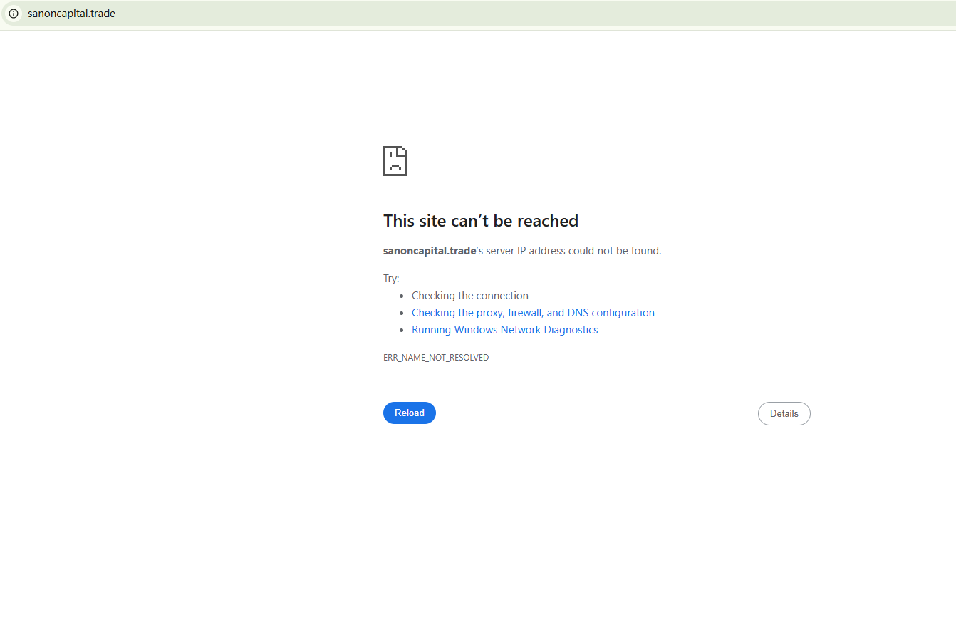 Sanon Capital’s websites are now largely inaccessible, only a basic login page (https://sanoncapital.cfd/) remains active. This is a common tactic used by fraudulent brokers to evade scrutiny and disappear quickly after collecting client funds.