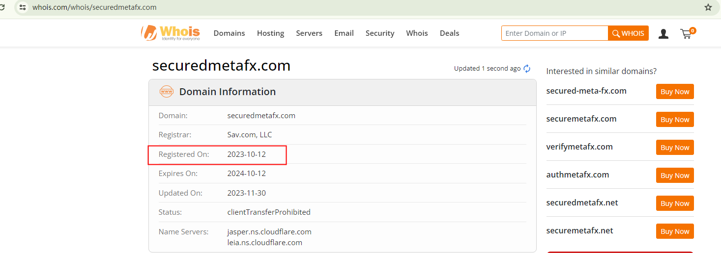 Secured Meta Fx asserts that it has been operating for over 13 years. However, its domain name, securedmetafx.com, was only registered in October 2023. This inconsistency raises a red flag.