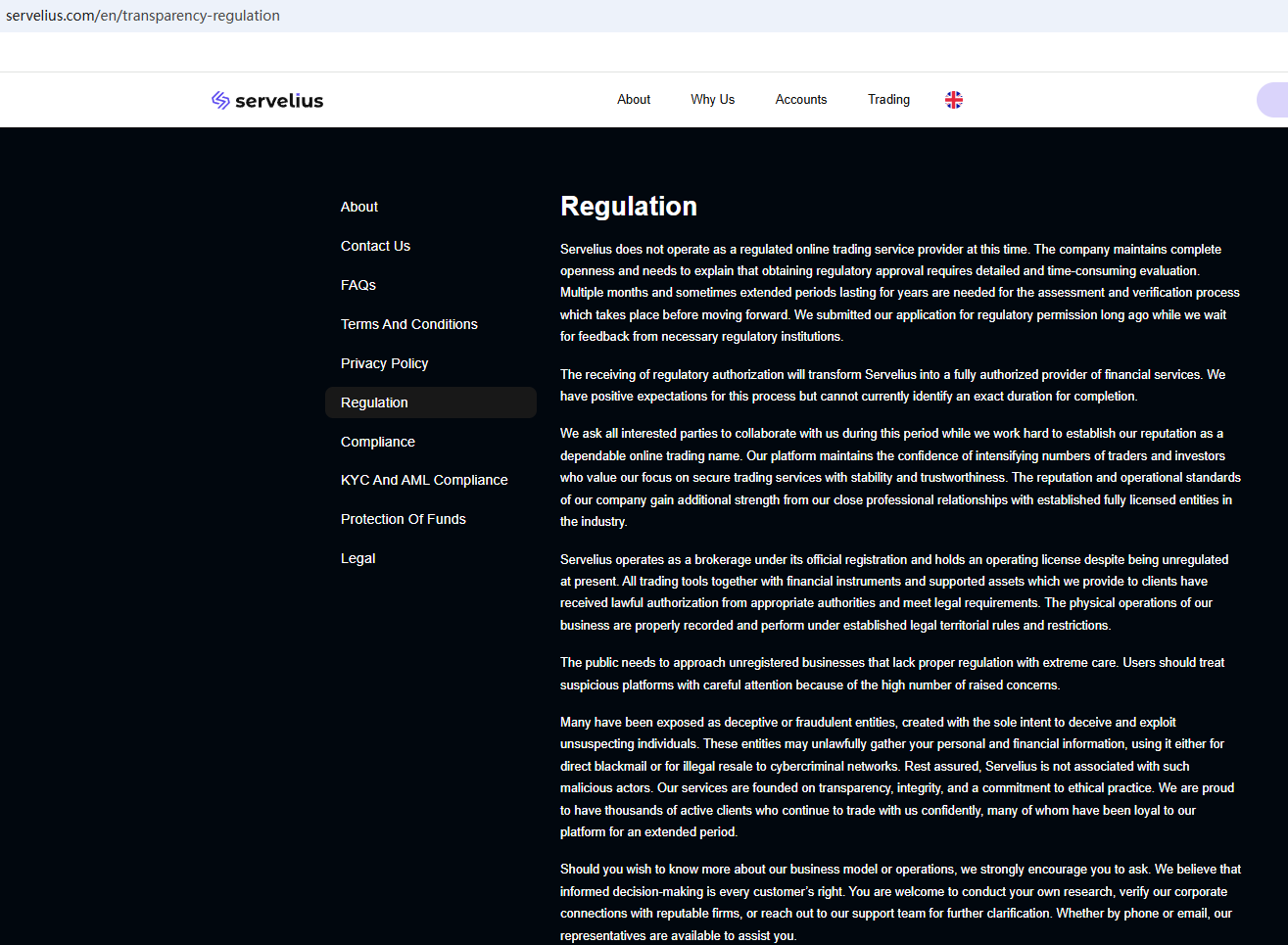 Servelius is not regulated by any authority. Therefore, Servelius is a scam.
