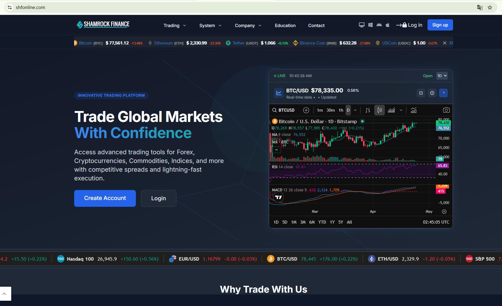 Shamrock Finance’s website provides no regulatory disclosures, only claims that it was registered in the USA.