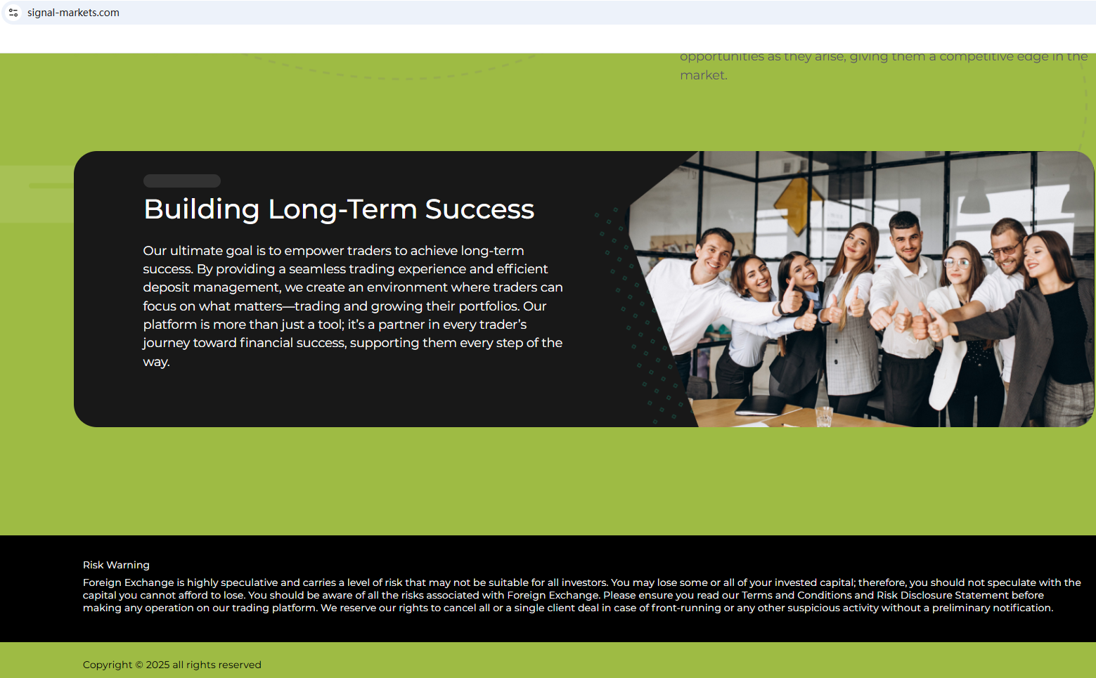 Platforms with these characteristics are often unregulated or fraudulent, posing significant risks to investor funds. Therefore, Signal Markets appears to be a scam.