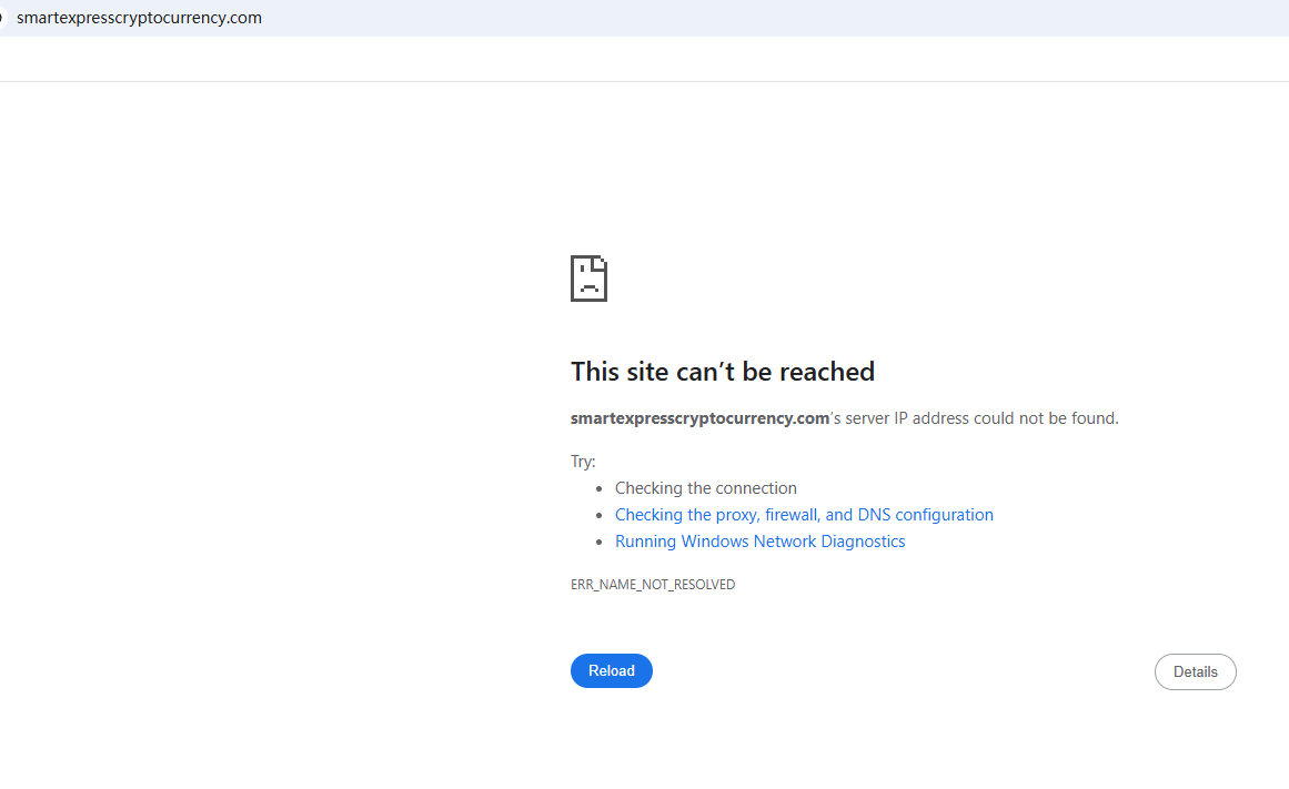 BrokersView found that the domain "https://smartexpresscryptocurrency.com/" is currently inaccessible. This is widely regarded as a significant red flag, as the suspension of a broker's website often points to underlying regulatory or operational issues.