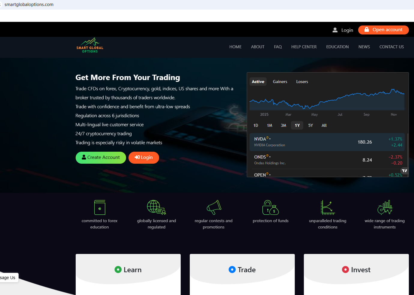 On November 21, 2025, the Financial Conduct Authority (FCA) issued a warning regarding Smart Global Options, suspecting that this company may be offering financial services or products without the necessary authorization. https://www.fca.org.uk/news/warnings/smart-global-options