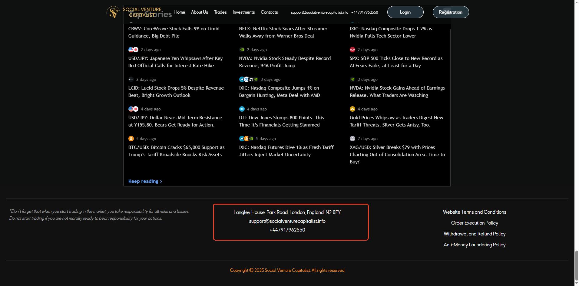 Social Venture Capitalist’s website provides no regulatory disclosures, only claims that it was registered in United Kingdom.