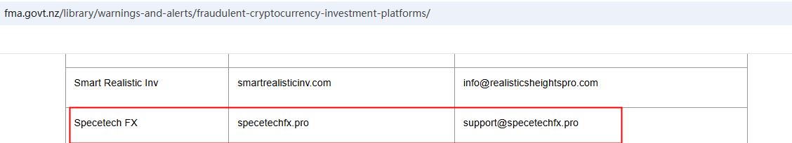 According to its website, it is located in the US. Upon investigation, no matching information was found in the National Futures Association (NFA). Moreover, the New Zealand Financial Markets Authority (NZ FMA) added Specetech FX to its warning list, stating that this is a fake investment platform.