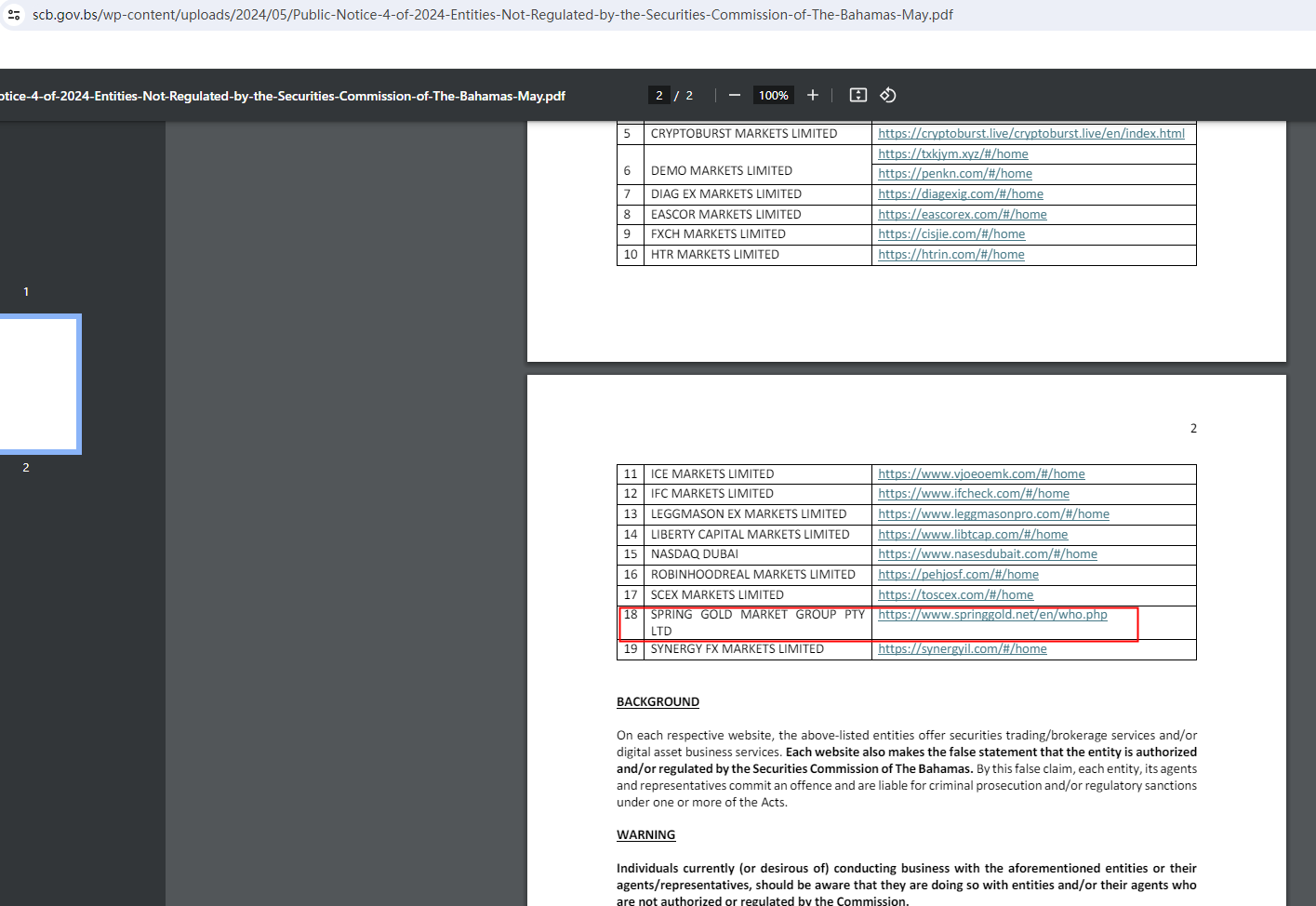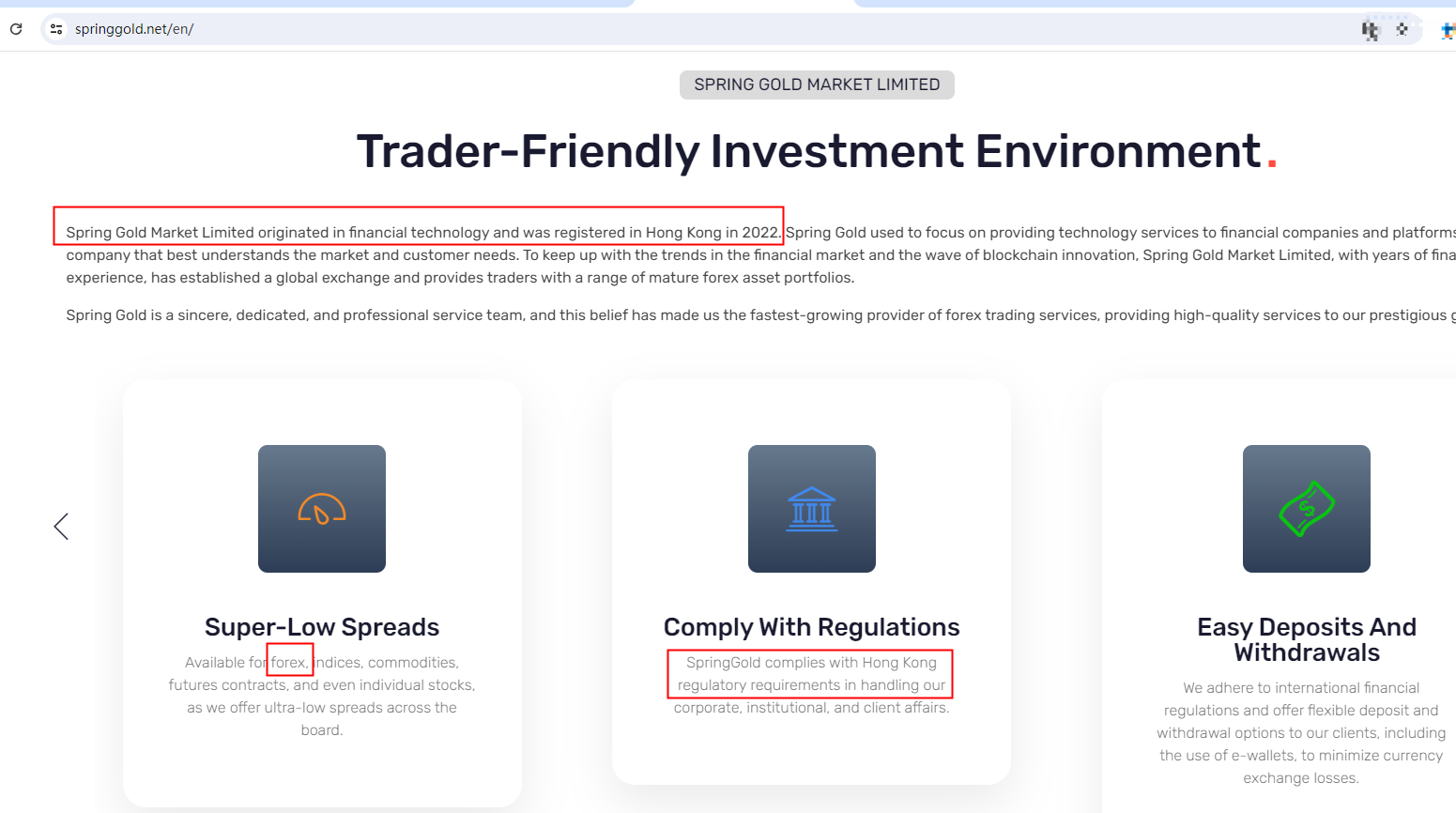 Spring Gold claims to be registered in Hong Kong and complied with Hong Kong regulatory requirements.