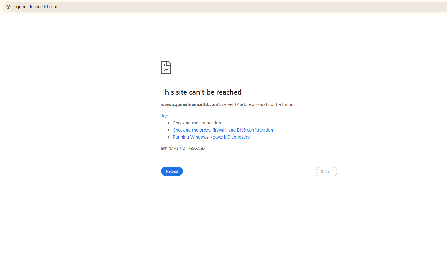 In essence, squiresfinanceltd.com is not regulated by any governing body. Entrusting this broker with investors' funds is highly risky, as there are no legal protections in place to safeguard the funds. It is unequivocally a scam.