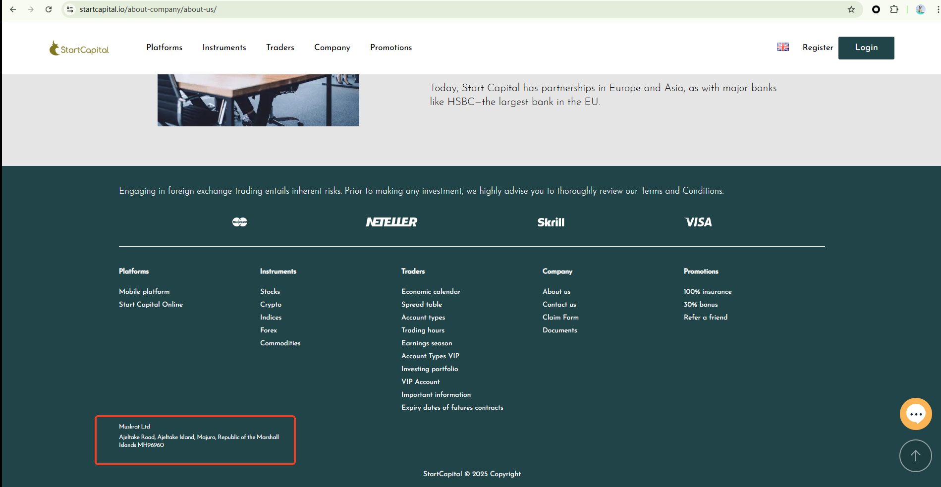 Despite claiming an established international reputation, Start Capital provides no verifiable regulatory credentials on its website. The company claims to be based in the Republic of the Marshall Islands. However, as far as we know, there is no regulatory authority in the country that oversees forex trading. Furthermore, we were unable to find any record of the company’s registration even with the Marshall Islands Registry (IRI), the organization which provides company registration services there. Therefore, Start Capital is believed to operate illegally and likely to be a scam.