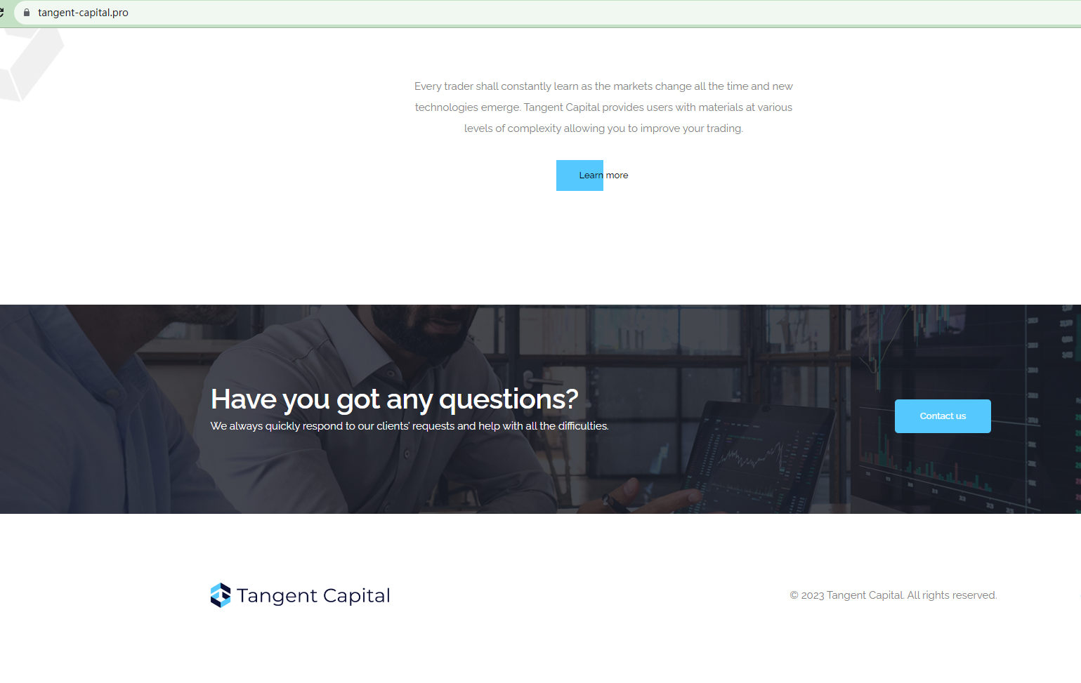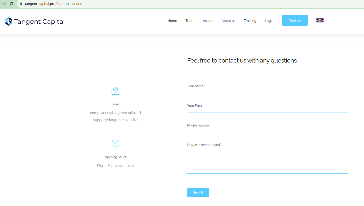 This platform only provides an email address and a "Contact Us" web form for investors to communicate with them. The limited communication channels are another red flag. Tangent Capital holds the initiative in negotiation. If they decide to ignore their customers, messages go unanswered. If they shut down the website, clients have no means to find them and will be unable to recover their funds.