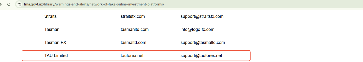 The domain name of TAU Limited was just regsitered in January 2025, making it a quite new website. It copies the licensing information of Star Funds Management Pty Ltd to create the illusion of being authorized by the Australian Securities and Investments Commission (ASIC). In fact, The ASIC licensee bears no responsiblity for TAU Limited. The New Zealand Financial Markets Authority (NZ FMA) has blacklisted the TAU Limited for fraudulent activities.