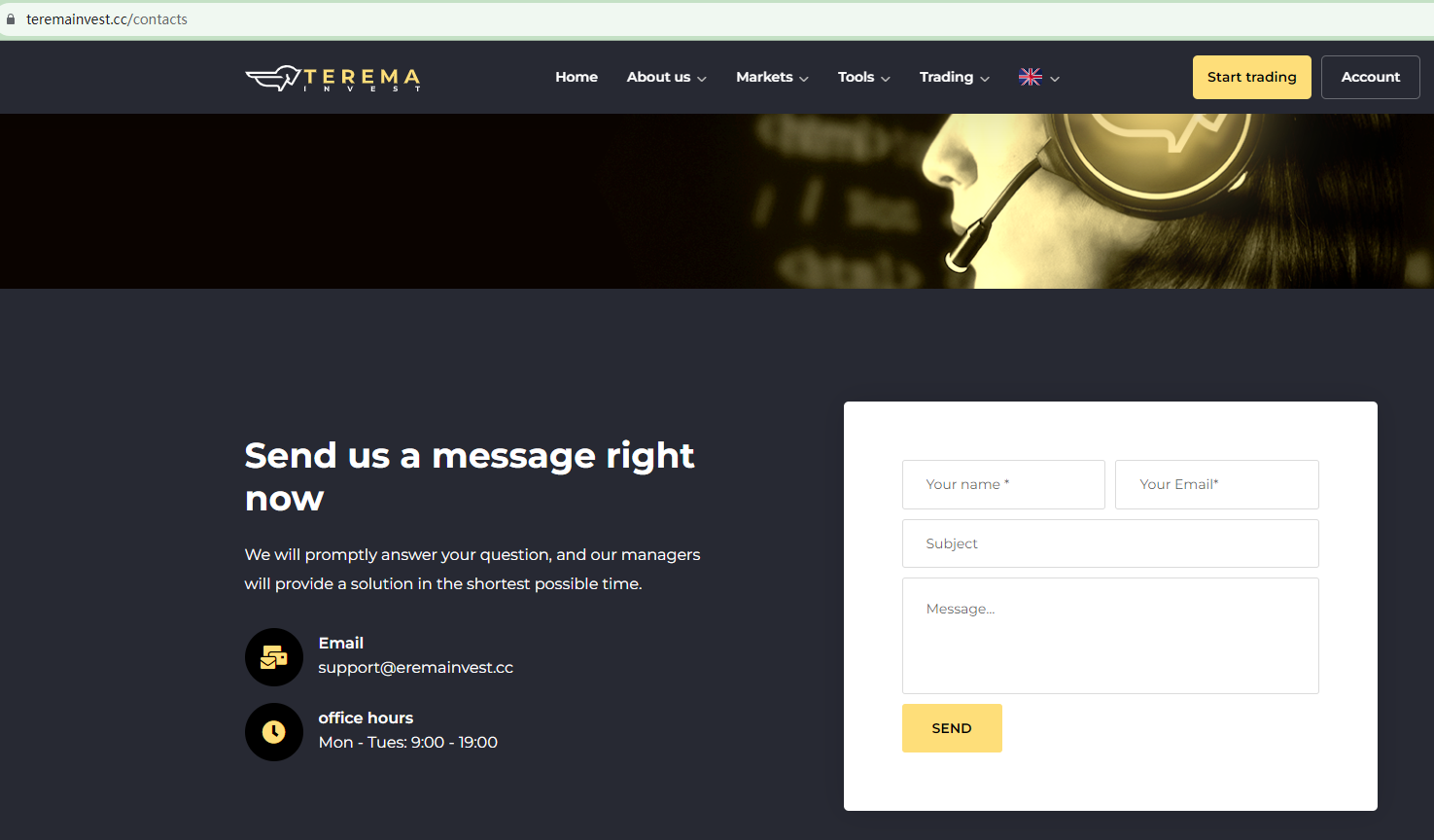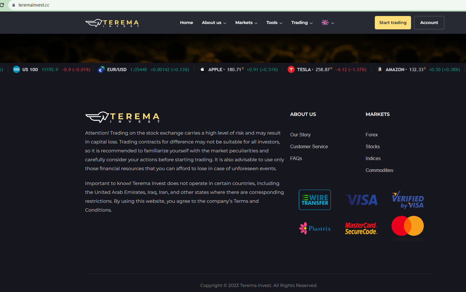 The links to its legal documents are all broken, suggesting that the website is poorly managed. The careless management further indicates that Terema Invest's goal is not to be a reliable forex broker.