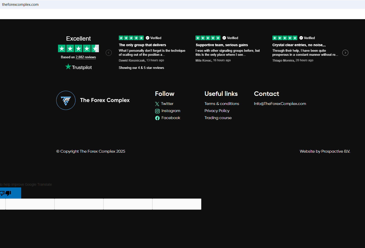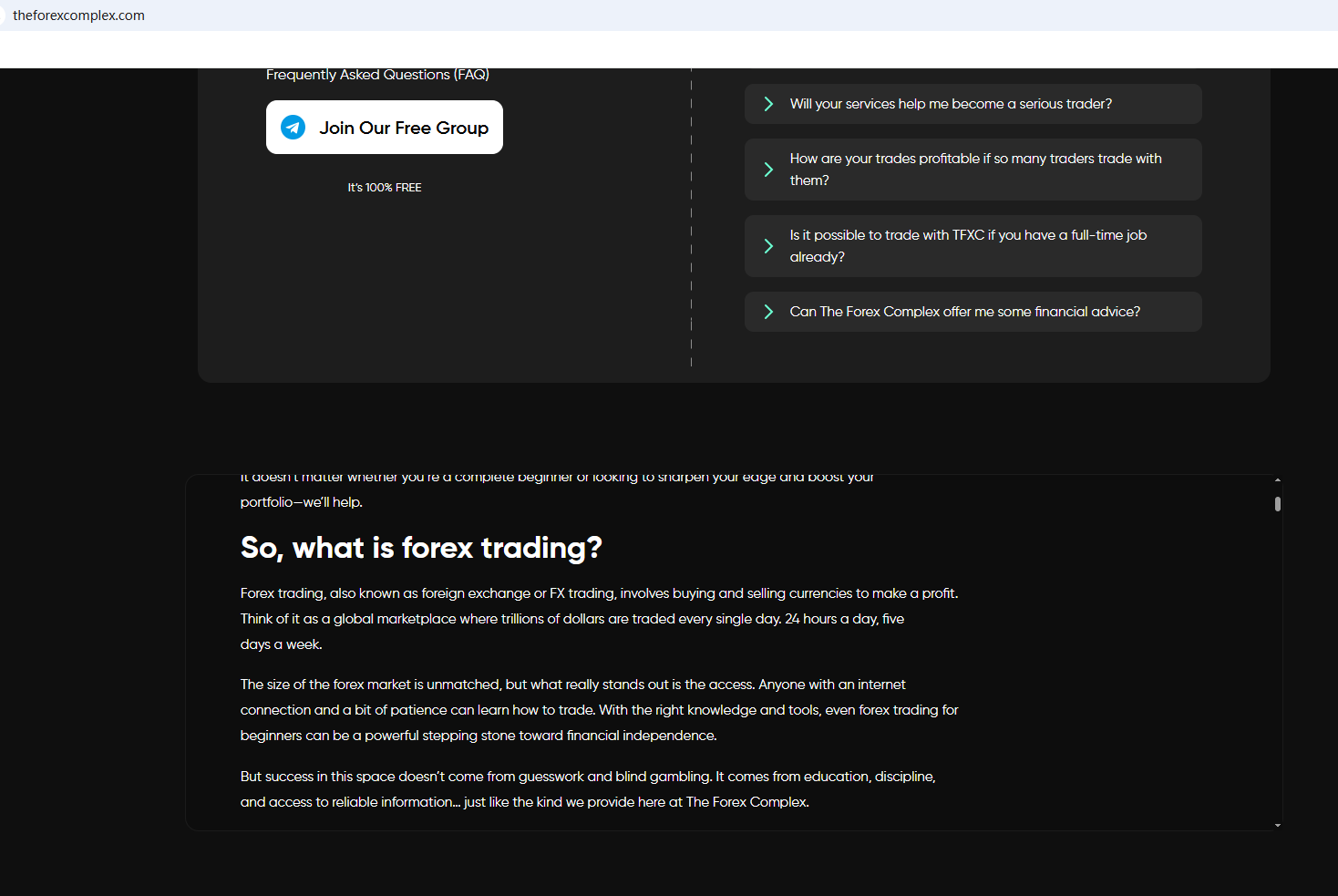 According to its website, it claims to be a reliable company, but does not display any valid regulatory information on the website. This is a very unreliable behavior. Investors are advised to be careful to identify and stay away from it. In addition, the Financial Conduct Authority (FCA) issued a warning against The Forex Complex, believing this company might be providing financial services or products without proper authorization in the UK.