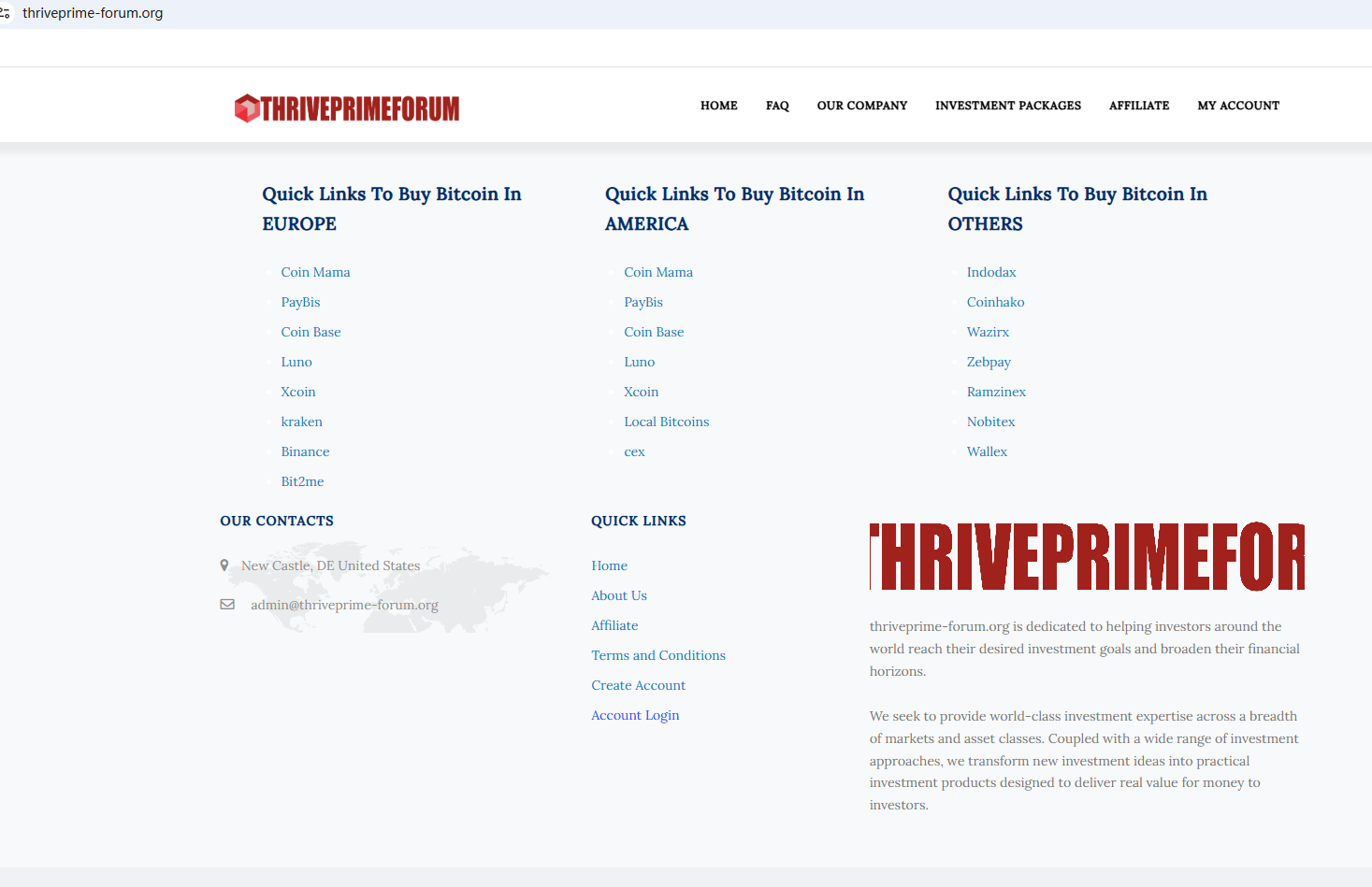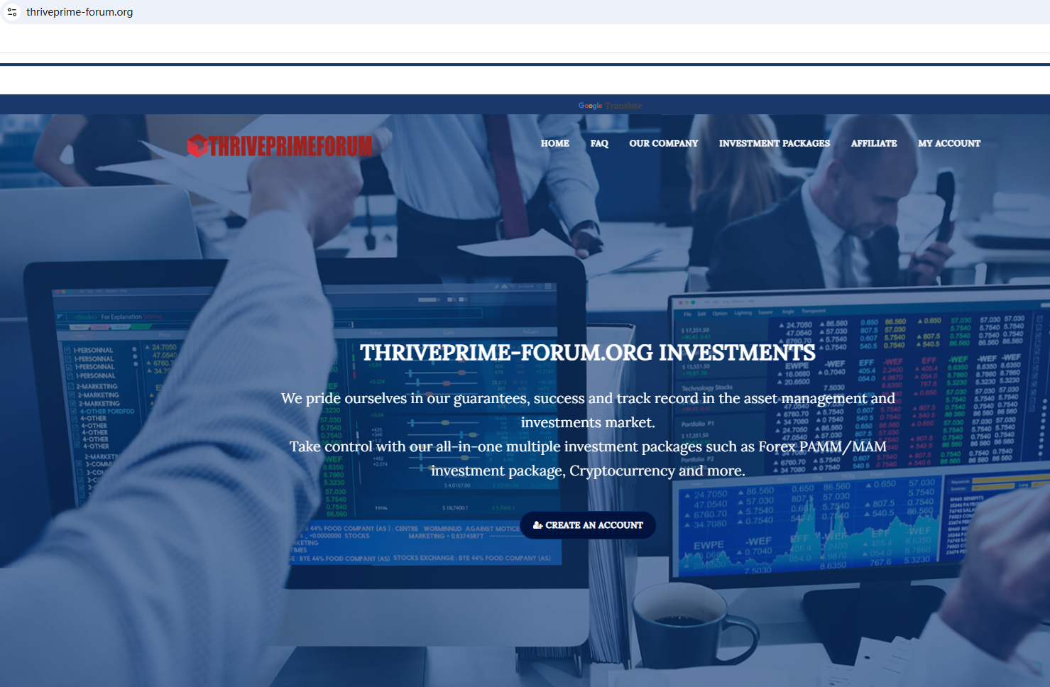 In fact, THRIVEPRIME-FORUM INVESTMENTS is not regulated by any authority. Therefore, THRIVEPRIME-FORUM INVESTMENTS is a scam.