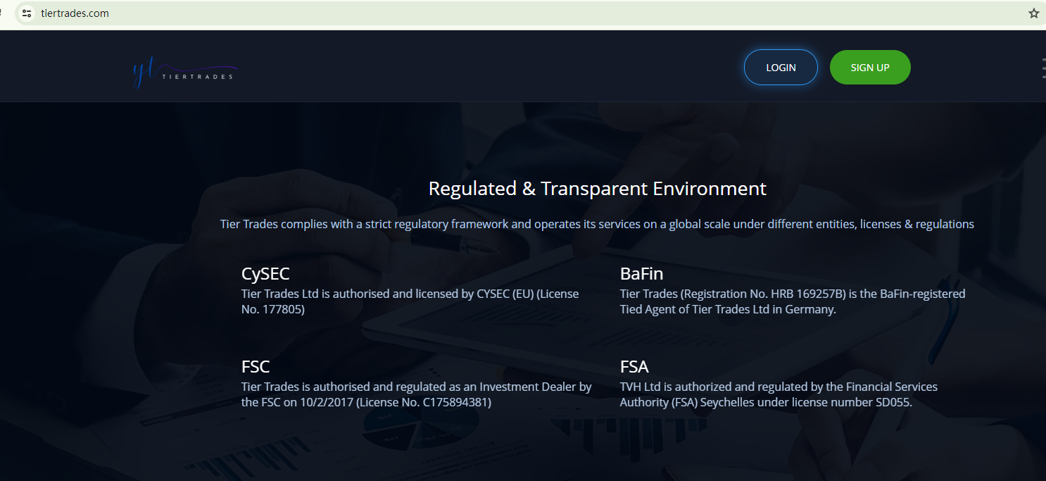 TIER TRADES, a self-proclaimed regulated and reliable forex broker, has been found to be quite the opposite upon investigation.The company's website lists four license numbers from various financial regulators, seemingly to establish its legitimacy. These include No. 177805 from the Cyprus Securities and Exchange Commission (CySEC), No. HRB 169257B from the Federal Financial Supervisory Authority (BaFin), No. C175894381 from the Mauritius Financial Services Commission (Mauritius FSC), and the SD055 from the Financial Services Authority of Seychelles (FSA Seychelles). The first three licenses are purportedly linked to Tier Trades Ltd, while the last one is associated with TVH Ltd, a company for which TIER TRADES does not provide any information to substantiate a connection. However, our comprehensive verification process has revealed that all these licensing details are baseless, indicating that TIER TRADES is employing deceptive tactics to lure unsuspecting investors.Furthermore, TIER TRADES asserts that it is based in the UK, where it would need to be authorized by the Financial Conduct Authority (FCA) to operate as a legitimate broker. Yet, it lacks such authorization, and the FCA has even flagged it as an unauthorized firm.In summary, TIER TRADES is not under the regulation of any governing body, making it a highly risky choice for investors due to the absence of legal protections for their funds. Therefore, it is prudent to conclude that TIER TRADES seems to be a scam. Proceed with caution.