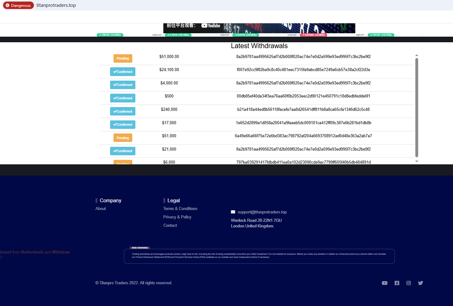 The website uses a template commonly used by scam websites, and both parties have been flagged by Brokersview multiple times. Ironically, their office address is located in the UK, and we discovered that the Financial Conduct Authority (FCA) issued a warning regarding TitanPro, suspecting that this company may be offering financial services or products without the necessary authorization.