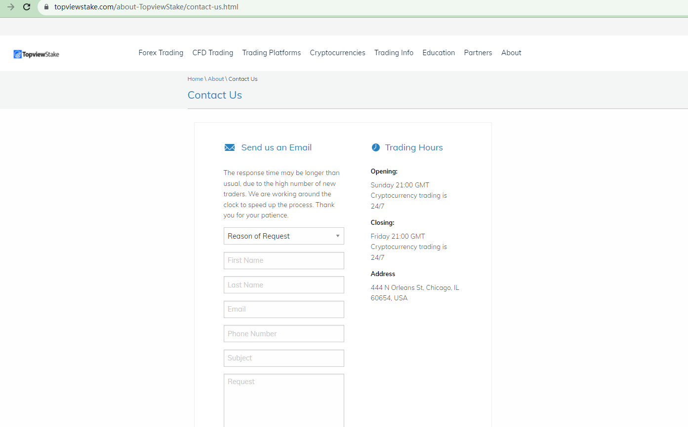 While TopviewStake claims to have 7 regulations across 6 continents, it fails to give specific information to further demonstrate it. Therefore the claim is unfounded and thus unreliable.TopviewStake purports to have an office in the US. However, we checked the register of the National Futures Association (NFA) and didn't find any records suggesting that it is registered in accordance with the US regulations. As for the link named "regulation" on its homepage actually directs visitors to the page for registration.In essence, TopviewStake is not regulated by any governing body. Entrusting this broker with investors' funds is highly risky, as there are no legal protections in place to safeguard the funds. TopviewStake is unequivocally a scam.