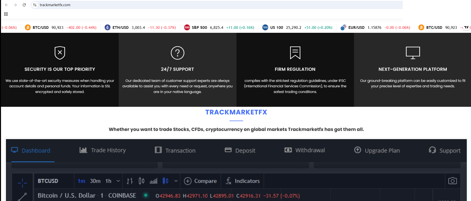 In fact, TRACK MARKETFX is not regulated by any authority. Therefore, TRACK MARKETFX is a scam.