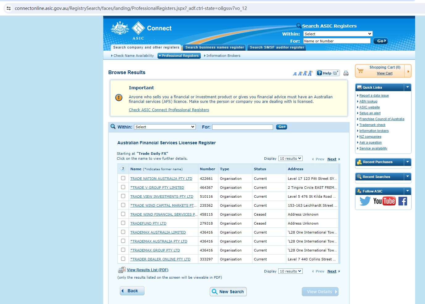 TRADE DAILY FX claims to be an Australian based investment company, we searched the Australian Securities & Investment Commission (ASIC) but found no matching results.