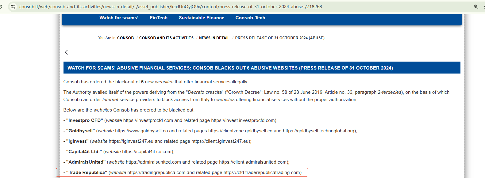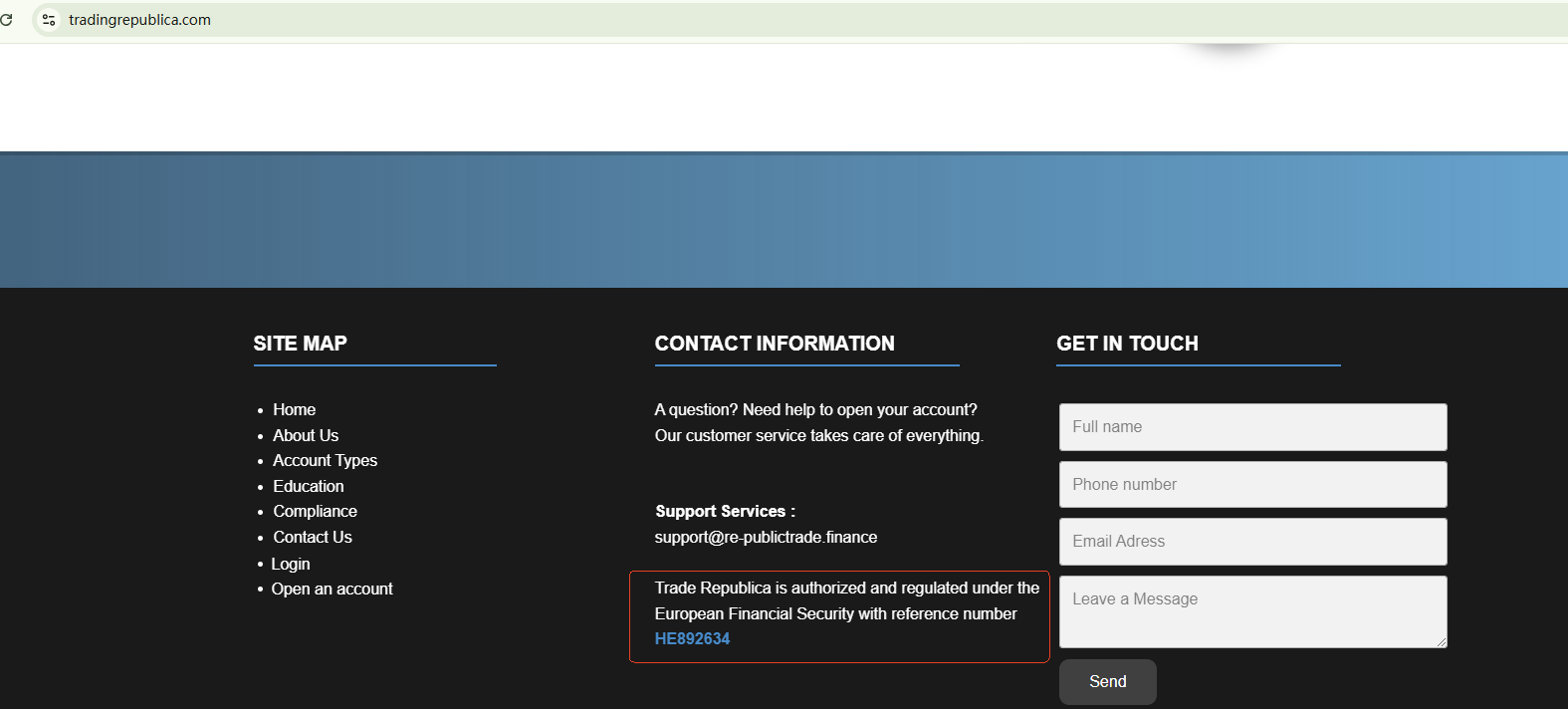 TRADE REPUBLICA, which registered its domain in late August 2024, claims to have a significant global presence. However, this assertion is questionable given its recent emergence. The broker also uses a certificate from FISEU to assert its legitimacy, but this regulator has been flagged as fake by the Federal Financial Supervisory Authority (BaFin) in Germany. Additionally, the Comisión Nacional del Mercado de Valores (CNMV) has added TRADE REPUBLICA to its warning list for providing unauthorized investment services.
