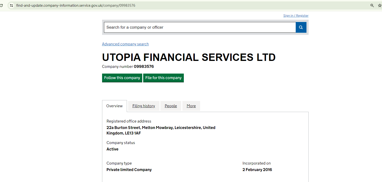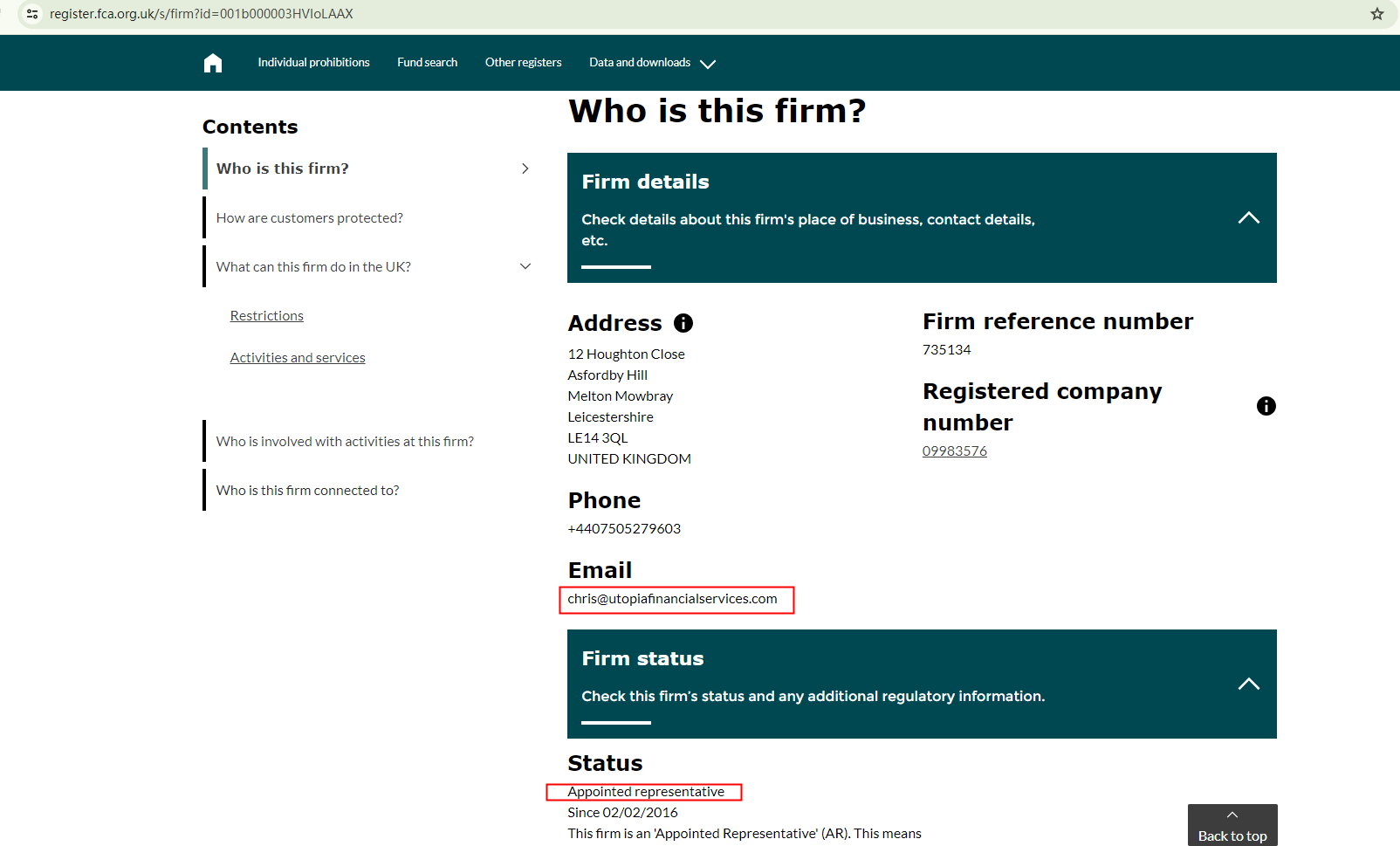 Indeed, a company by the same name exists under the given registration number in the Companies House (CH) register. However, upon searching the Financial Conduct Authority (FCA) register, we found that Utopia Financial Services Ltd is merely an Appointed Representative (AR). The contact information associated with it, as published by the FCA, does not appear to be linked to TRADE UTOPIA. This suggests the possibility that TRADE UTOPIA is unauthorizedly using the company's name and other details to give an impression of legitimacy.