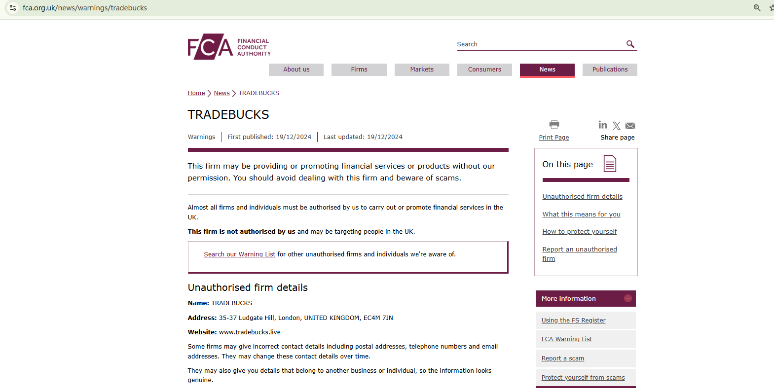 TRADEBUCKS seems to have emerged recently, with its domain name just registered less than two months ago. The website doesn't offer any valid registration or licensing information to suggest that it is legitimate and compliant with the industry regulations. While it claims to be a British company, it has been flagged by the Financial Conduct Authority (FCA) for operating without the required authorization.