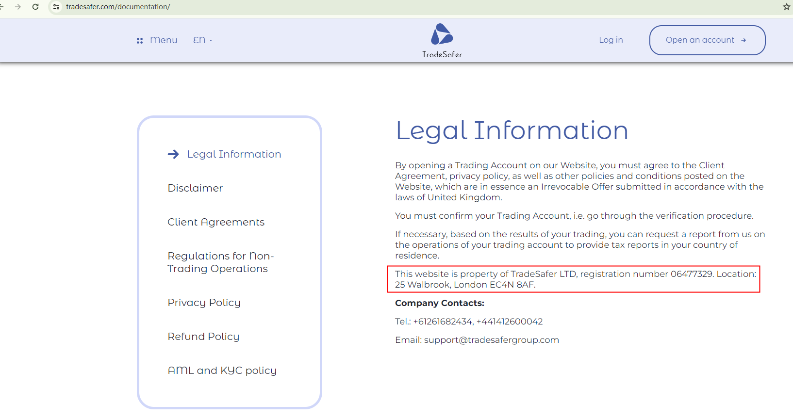 In essence, Tradesafer is not regulated by any governing body. Entrusting it with investors' funds is highly risky, as there are no legal protections in place to safeguard the funds.