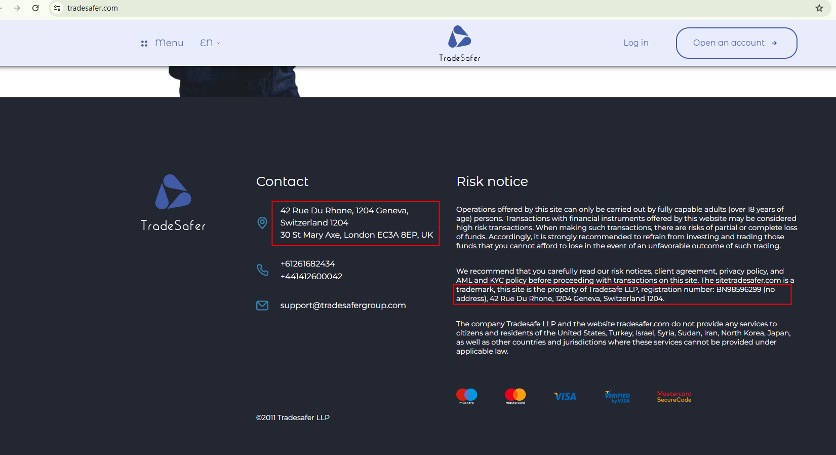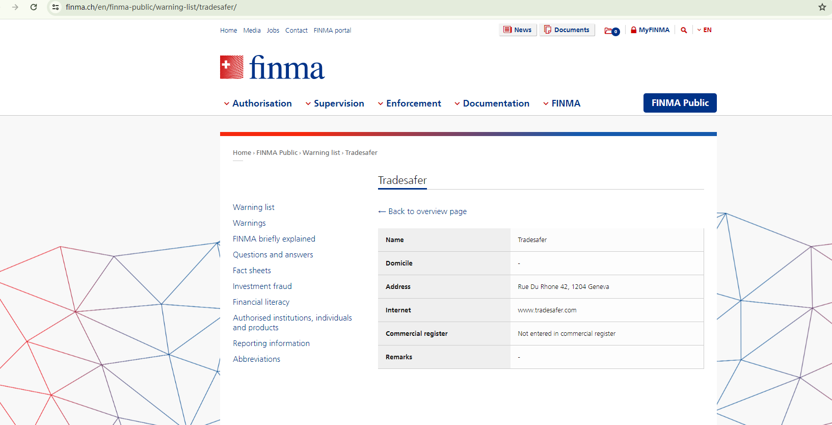 Despite Tradesafer's assertions of being registered in the UK and Switzerland, our investigations with the relevant financial regulators - the Financial Conduct Authority (FCA) and the Swiss Financial Market Supervisory Authority (FINMA) - indicate that it does not hold a license from either of these authorities. Furthermore, FINMA has issued a public warning about Tradesafer to inform the public about this unlicensed entity.