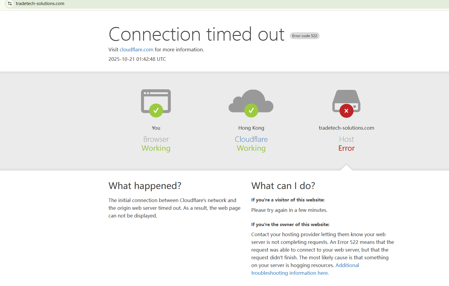We found that the domain "https://tradetech-solutions.com/" is currently inaccessible. This is widely regarded as a significant red flag, as the suspension of a broker's website often points to underlying regulatory or operational issues.