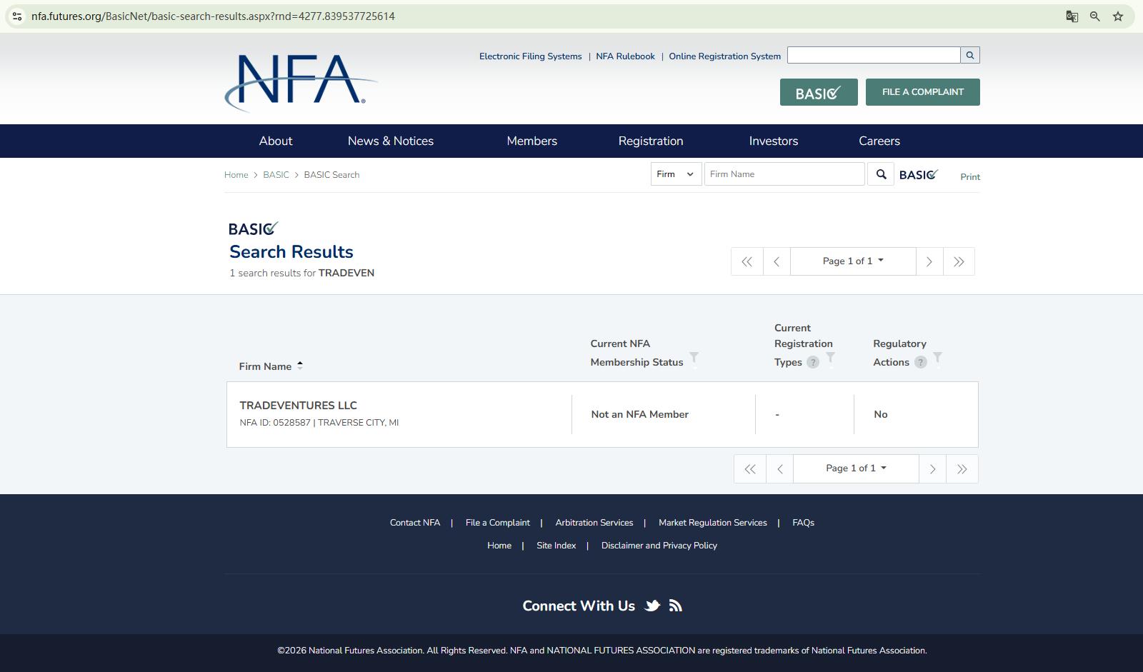 Tradeven fails to provide any regulatory information, merely listing a physical address in the United States. Consequently, we conducted a search through the official U.S. financial regulator, the National Futures Association (NFA), but found no record of an entity named Tradeven (TDE) Ltd.