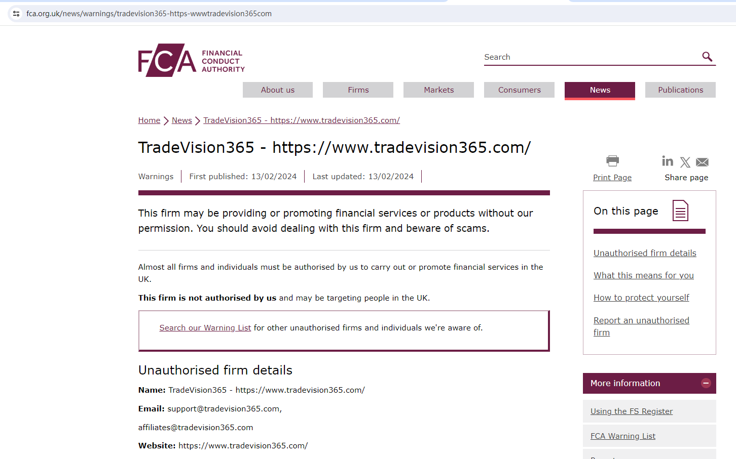 At present, the website of Tradevision365 is inaccessible. Our investigation indicates that Tradevision365 was not regulated and had been warned by the Financial Conduct Authority (FCA). These factors strongly suggest that it is fraudulent in nature. Therefore, we strongly advise against using Tradevision365. For a safer trading environment and peace of mind.