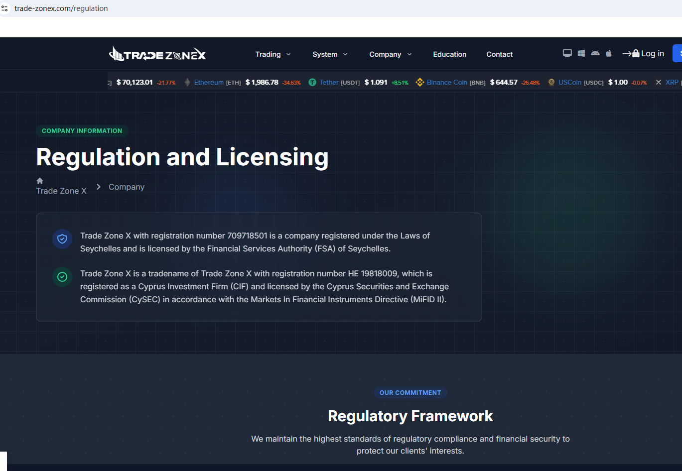 According to its website, it claims to be regulated by the Seychelles Financial Services Authority (Seychelles FSA) and the Cyprus Securities and Exchange Commission (CySEC). Upon investigation, no matching information was found in the Seychelles FSA and CySEC. In addition, the Financial Conduct Authority (FCA) issued a warning regarding TradeZonex, suspecting that this company may be offering financial services or products without the necessary authorization.