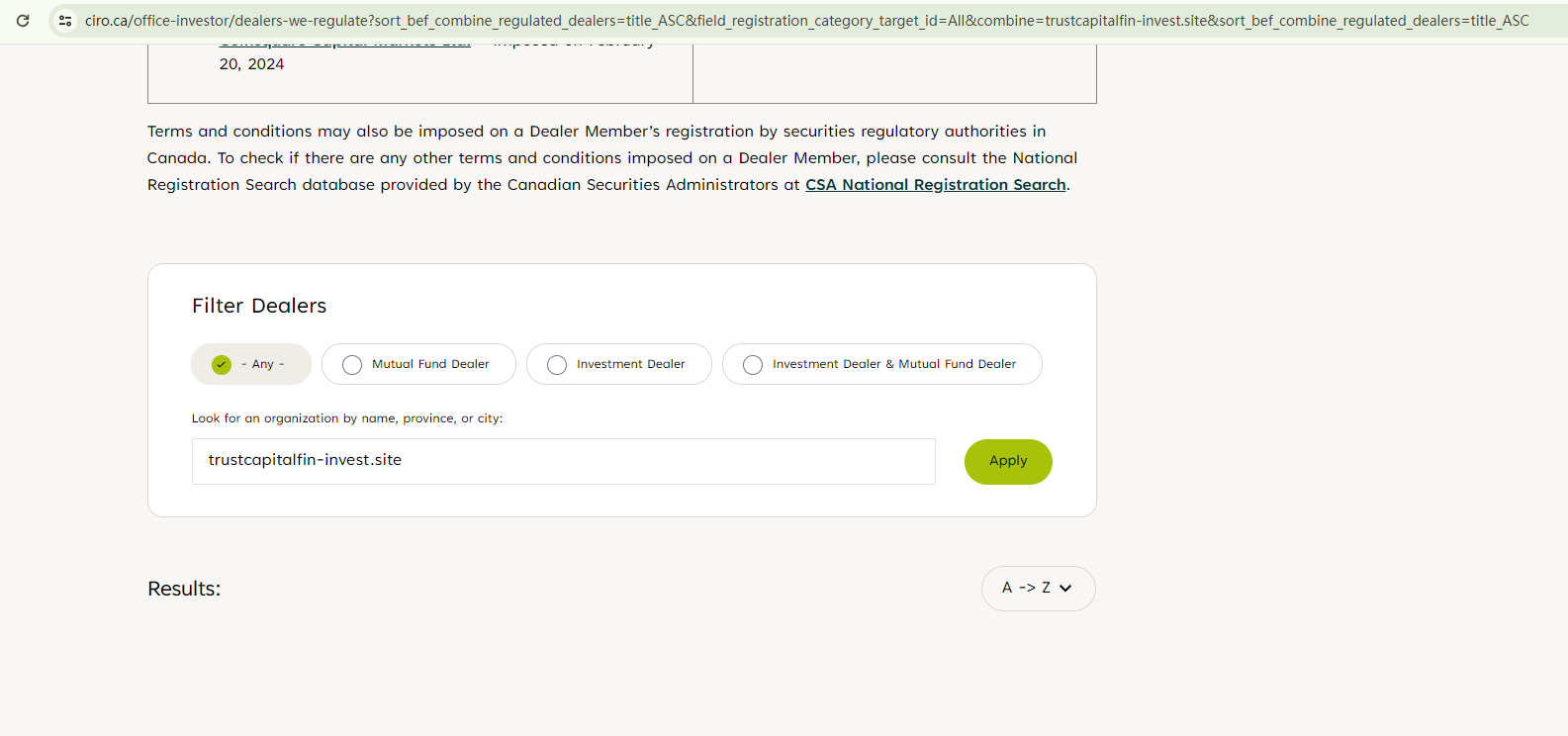 The regulatory information TRUST CAPITAL FINANCE claims is confusing. We organized it and concluded that it purports to be regulated by the U.S. Securities and Exchange Commission (SEC), the Investment Industry Regulatory Organization of Canada (IIROC), and be a member of the Financial Commission.