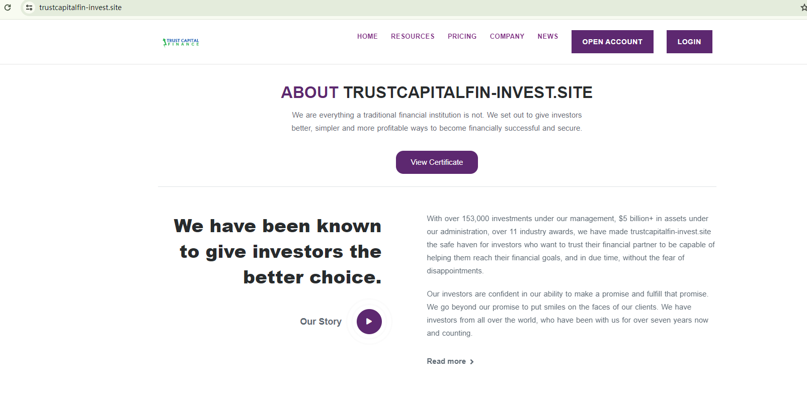 TRUST CAPITAL FINANCE appears to be a scam.