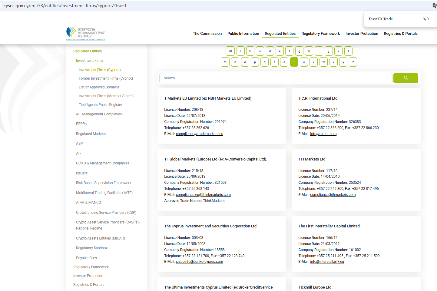 According to its website, it is regulated by both the Financial Conduct Authority (FCA) and the Cyprus Securities and Exchange Commission (CySEC). However, a search revealed no matching information with CySEC. Furthermore, the FCA issued a warning regarding Trust FX Trade, suspecting that this company may be offering financial services or products without the necessary authorization.