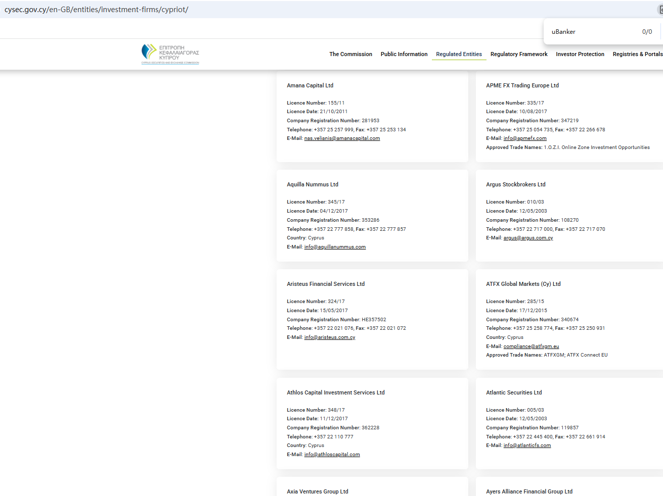 and has an address in Cyprus Securities and Exchange Commission (CySEC). Upon investigation, no matching information was found in VFSC and CySEC.