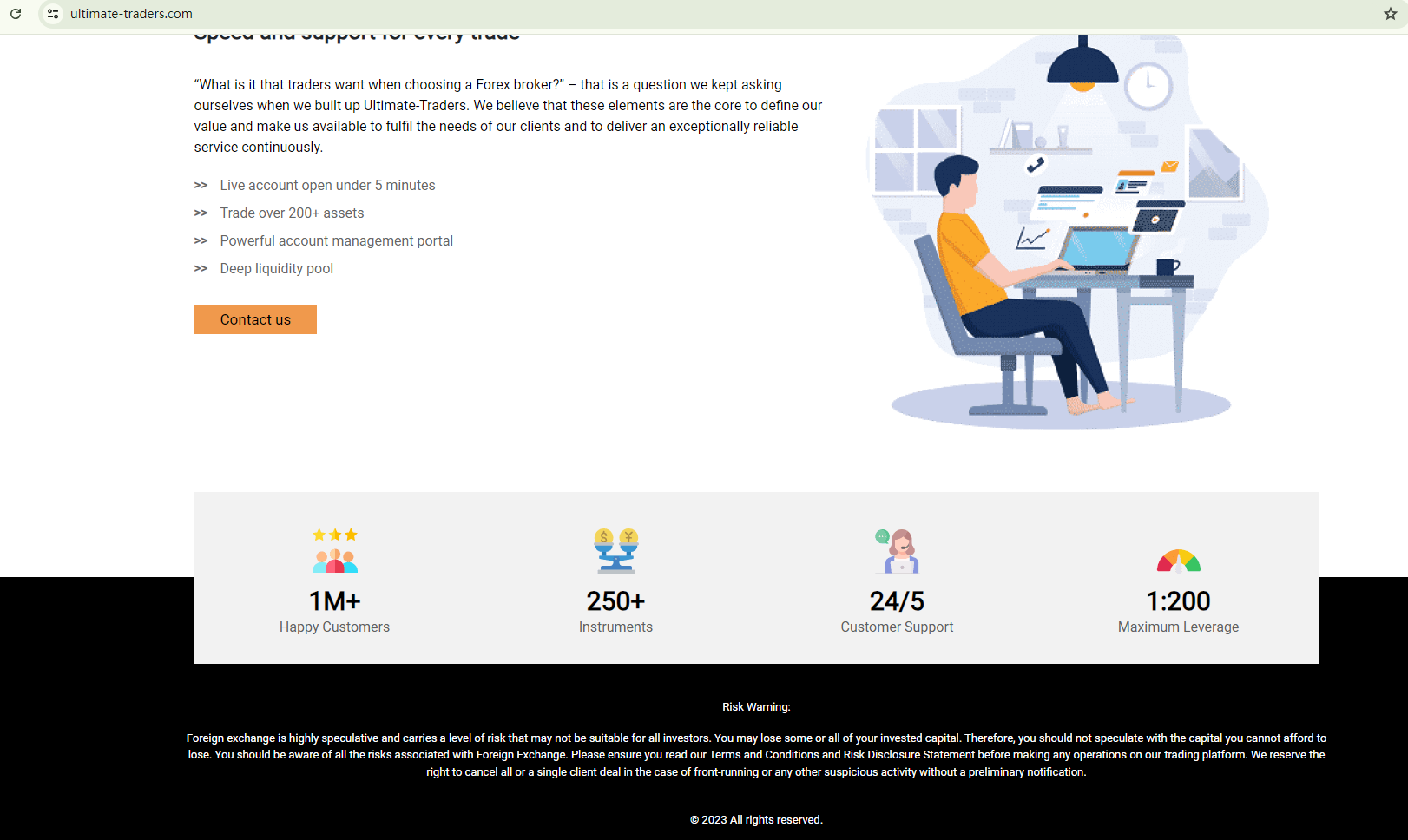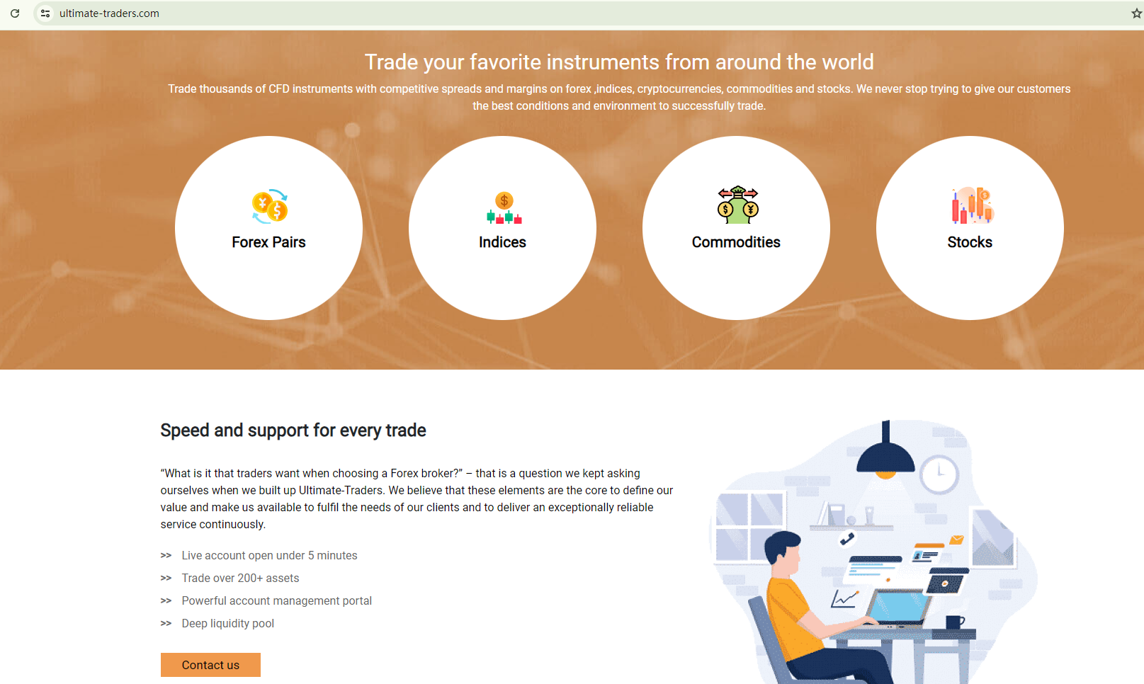 Ultimate Traders fails to provide any regulatory information to demonstrate its legitimacy in the forex market. This is a scam indicator.