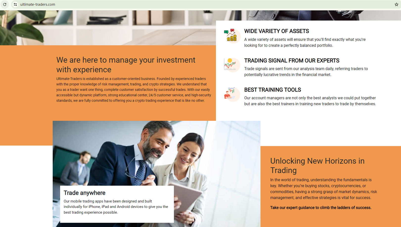 In essence, Ultimate Traders is not regulated by any governing body. Entrusting it with investors' funds is highly risky, as there are no legal protections in place to safeguard the funds.