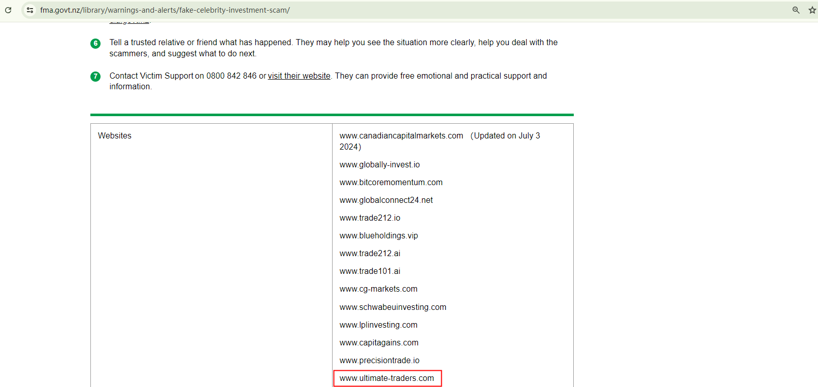 What's more, Ultimate Traders is red-flagged by the New Zealand Financial Markets Authority (NZ FMA) as it is involved in a fake celebrity investment scam. This is a significant evidence of the broker's fraudulent nature.