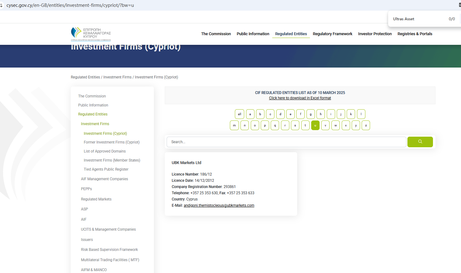 According to its website, it is regulated by both the Financial Conduct Authority (FCA) and the Cyprus Securities and Exchange Commission (CySEC). However, a search revealed no matching information with CySEC. Furthermore, the FCA issued a warning regarding Ultras Asset, suspecting that this company may be offering financial services or products without the necessary authorization.