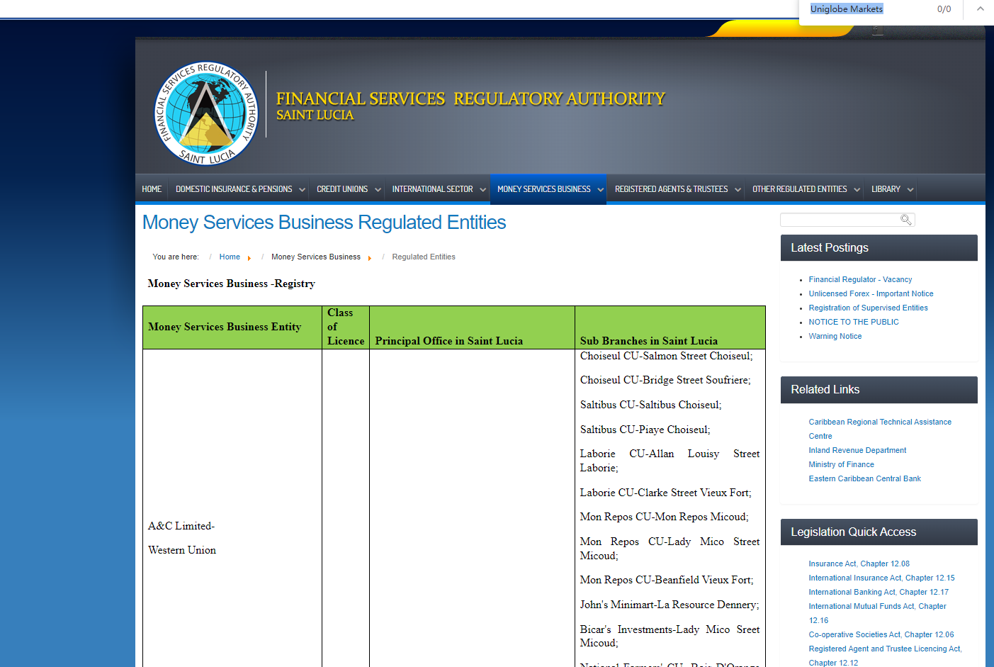 In addition, the Cyprus Securities and Exchange Commission (CySEC) issued a warning that Uniglobe Markets was providing financial services or products without authorisation.