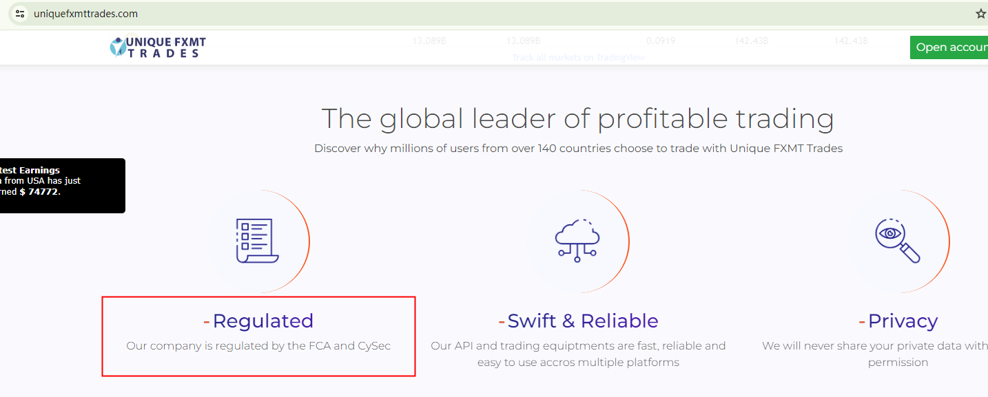 Unique FXMT Trades purports to be regulated by the Financial Conduct Authority (FCA) and the Cyprus Securities and Exchange Commission (CySEC), even displaying images of relevant certificates to substantiate its claims.