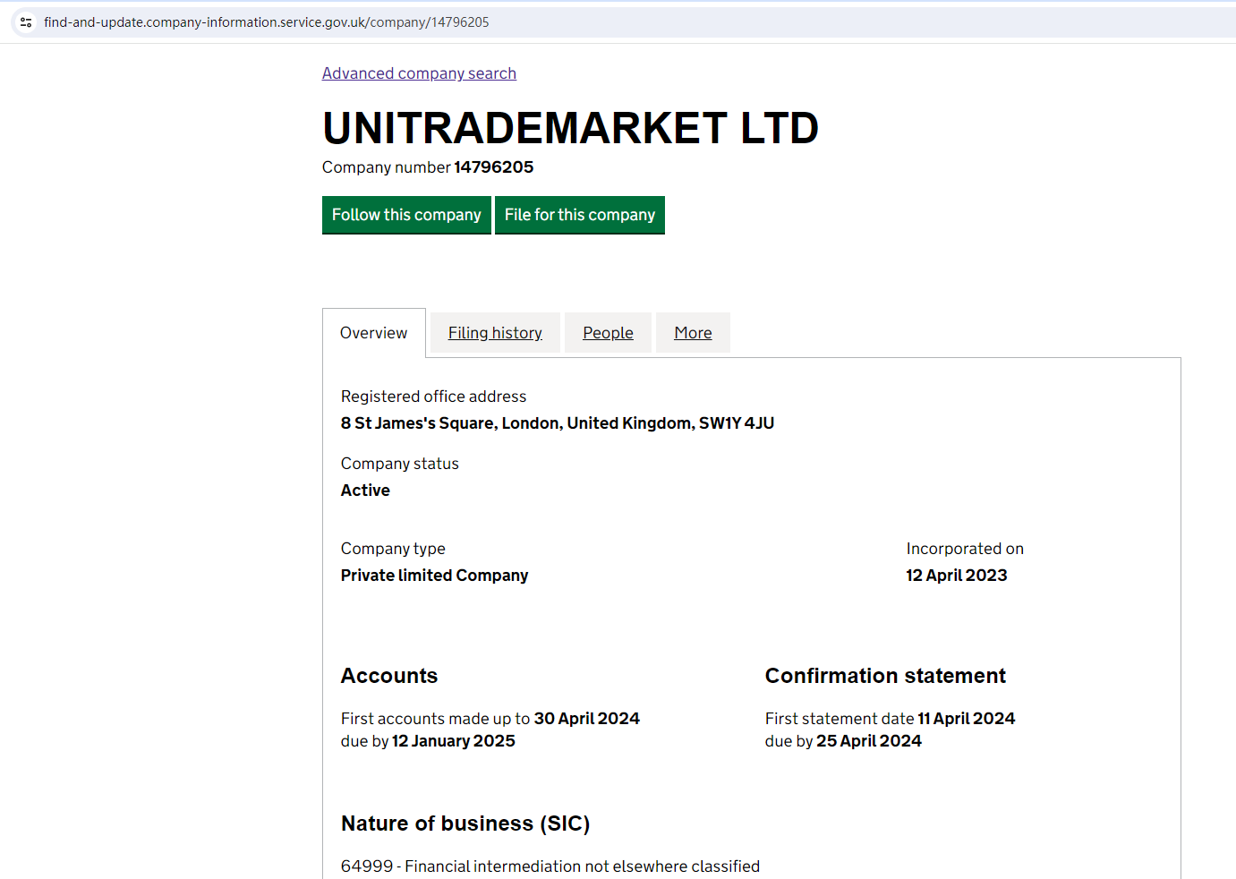 UNITRADE MARKET claims to be a company incorporated in England and Wales under registered