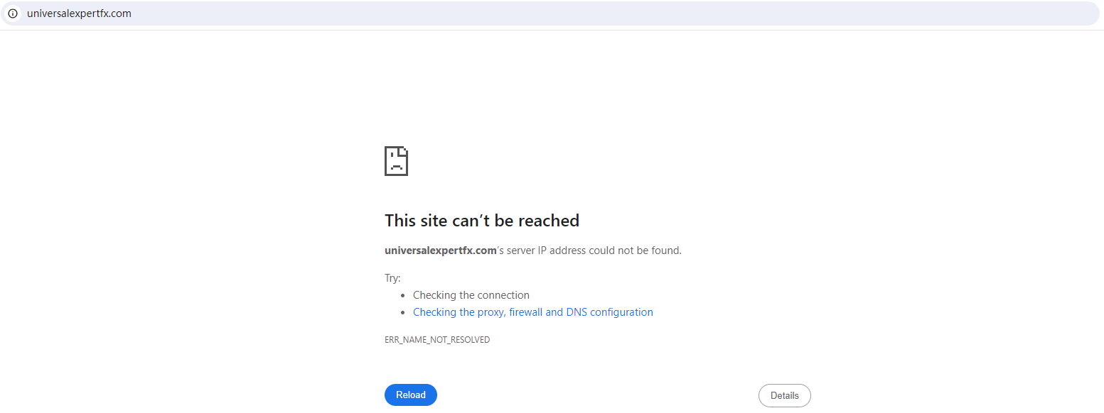 While Universal Expert FX showcases a certificate issued by the US Securities and Exchange Commission (SEC) to appear legitimate, there are no data in the SEC register matching this company. This means the certificate is fake.Universal Expert FX marks itself as a forex broker, and thus it is required to be regulated by the Commodity Futures Trading Commission (CFTC) and registered as a member of the National Futures Association (NFA). However, our search for this platform in the NFA BASIC didn't yield any results.Furthermore, the Financial Conduct Authority (FCA) has issued a warning against Universal Expert FX, believing this broker might be providing financial services or products without proper authorization.In essence, Universal Expert FX is not regulated by any governing body. Entrusting this broker with investors' funds is highly risky, as there are no legal protections in place to safeguard the funds. Universal Expert FX is unequivocally a scam.