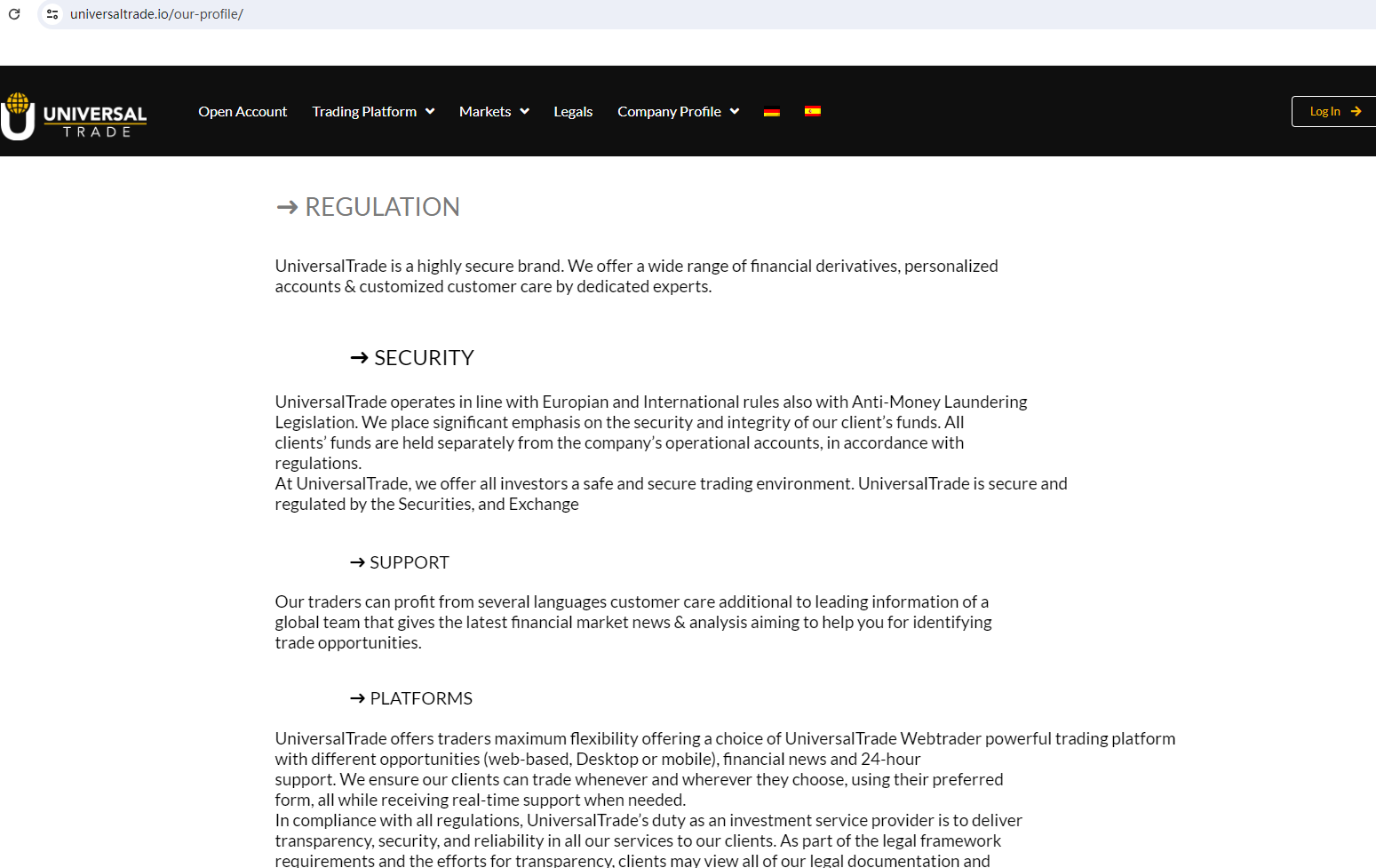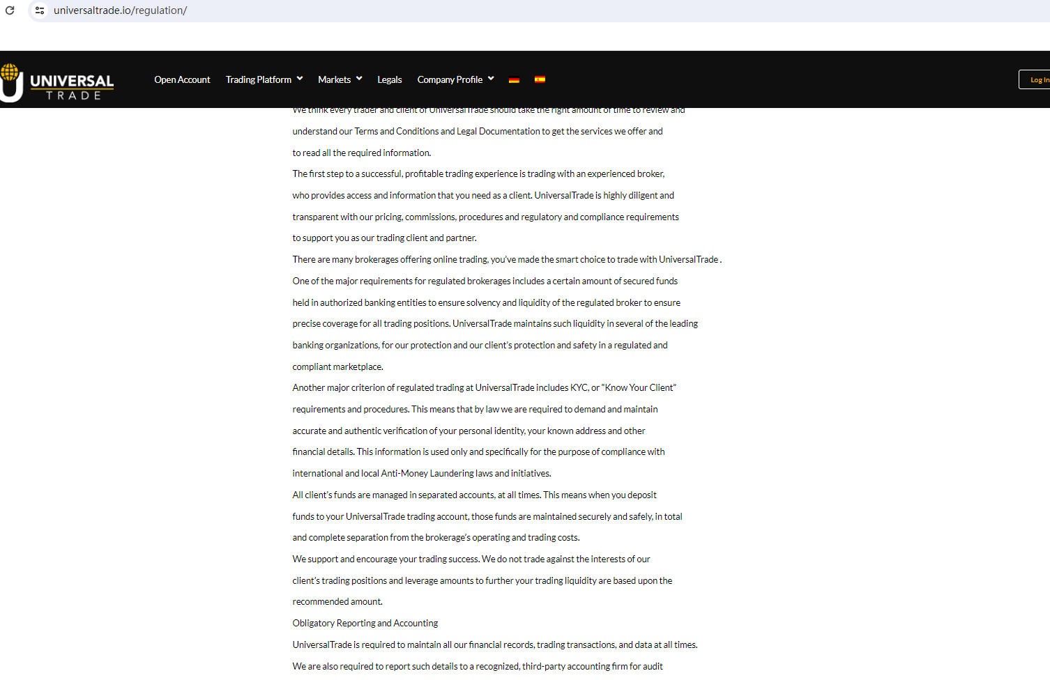 The truth is that UNIVERSAL TRADE is not regulated by any regulators. Letting it hold or control investors' money is unsafe, and the money can not be protected by any laws.