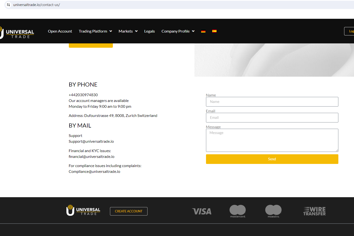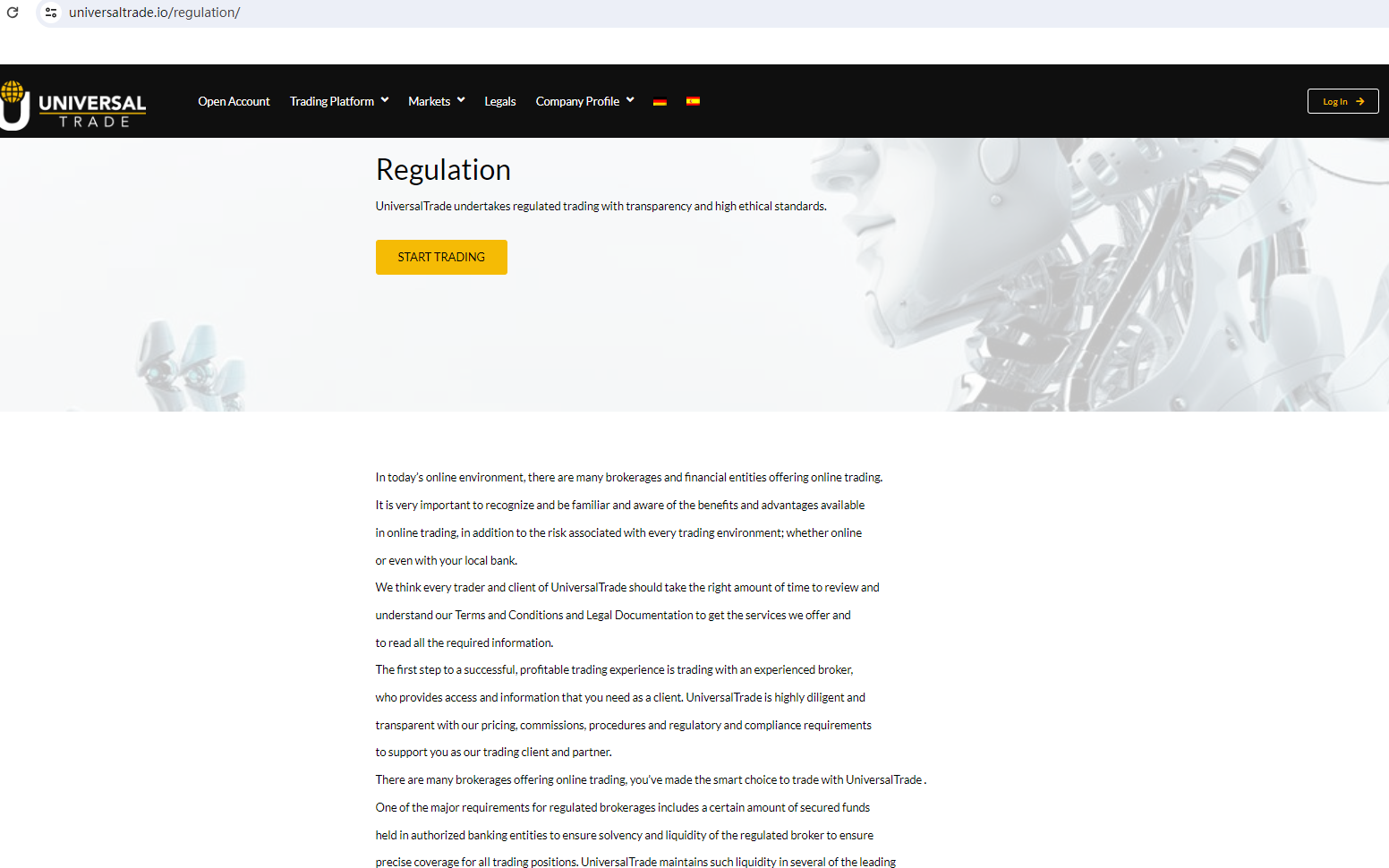 BrokersView found that the domain "https://universaltrade.io/" is currently inaccessible. This is widely regarded as a significant red flag, as the suspension of a broker's website often points to underlying regulatory or operational issues.