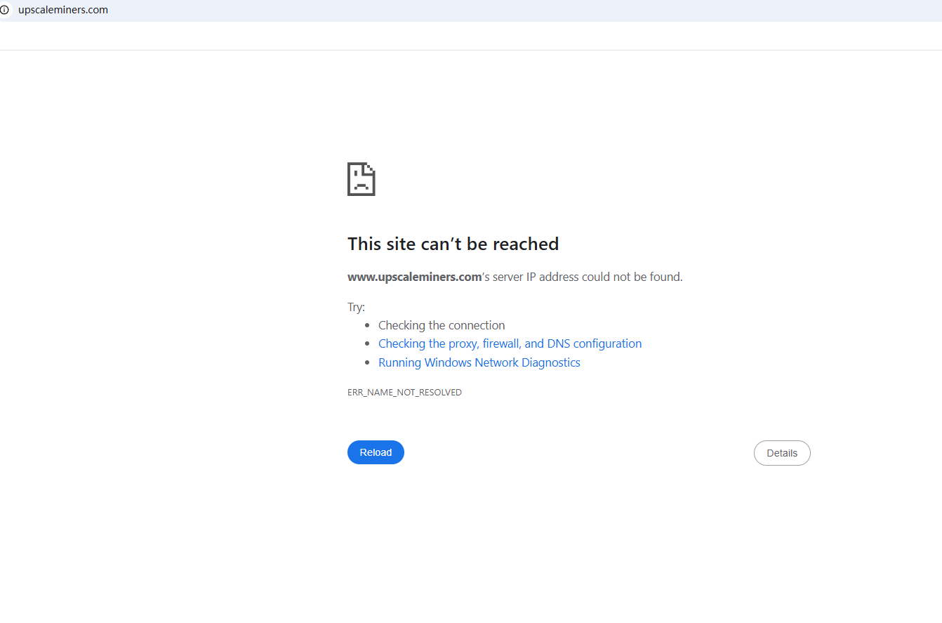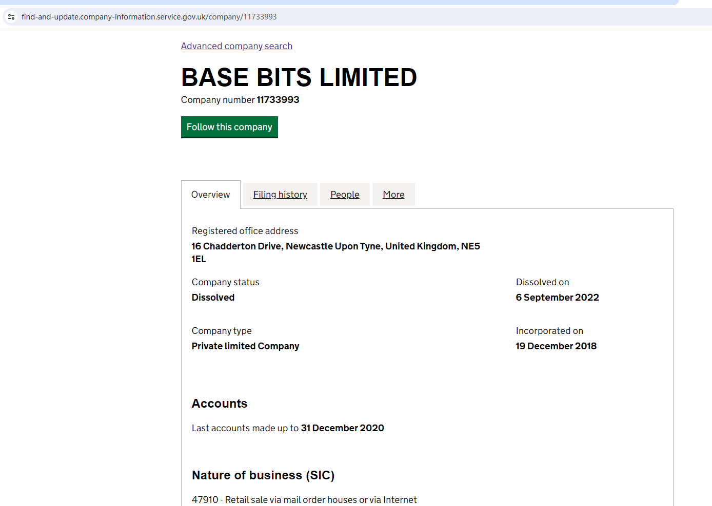 Upscaleminers claims to be registered under the UK Companies House (CH). We searched by the company number 11733993 but found a mismatch for one company BASE BITS LIMITED which had a different company name and registered office address than Upscaleminers, when we searched by company name Upscaleminers there were no results.
